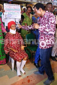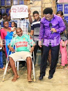Ses misères continuèrent jusqu’à ce qu’il visite la SCOAN et reçoive la touche ointe du Prophète T.B. Joshua. Immédiatement, quand l’homme de Dieu a posé sa main sur lui, sa jambe fracturée a commencé à trembler alors que le Saint-Esprit se lançait dans une réparation divine. Au fur et à mesure que le processus se poursuivait, le Nigérian sentit la chaleur sur toute sa jambe et se leva brusquement pour marcher sur le commandement de l’homme de Dieu, au nom puissant de Jésus.