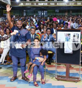 au-delà de la compréhension humaine ! M. Manah, un Nigérian, rencontra sa femme dans l’île des Caraïbes, mais ils firent face à une montagne médicale. Il fit un pas audacieux de demander à sa famille nigériane d’envoyer l’Eau du Matin à sa base. Deux semaines plus tard, après avoir appliqué l’Eau du Matin, Mme Manah conçut miraculeusement – un fait qui choqua le médecin qui lui avait dit qu’elle n’accoucherait jamais naturellement en raison de l’état incurable des ovaires polycystiques. Debout devant la congrégation, le couple arborait fièrement leur belle petite fille nommée Miracle! En outre, Mme Manah est enceinte de leur deuxième enfant!