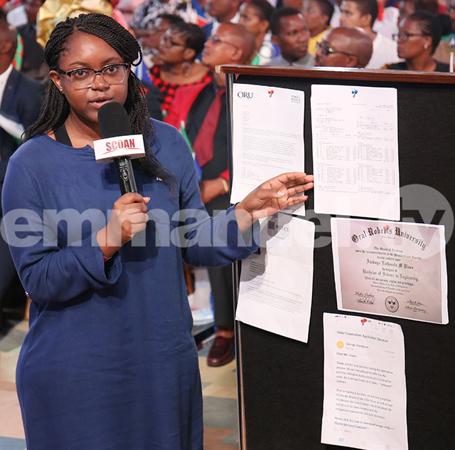 Mlle Aiodago Uises se tenait pour la première fois dans l’auditorium de La SCOAN. Même si elle était une nouvelle venue dans l’édifice, elle n’était pas nouvelle dans le ministère. Ayant regardé Emmanuel TV pendant de nombreuses années, elle s’est tournée vers la puissance de Dieu qui coule à travers le ministère pour obtenir de l’aide dans sa carrière. En 2011, elle avait été admise à l’université mais n’a pas pu financer ses études car ses parents étaient à la retraite et elle avait peu de revenus. Elle a commencé à prier avec le prophète T.B. Joshua sur Emmanuel TV et le Seigneur a répondu à sa prière de manière inattendue. Tout d’abord, l’université a communiqué avec elle sans la solliciter et lui a offert une bourse d’études. Ensuite, un ami éloigné de la famille l’a contactée et a déclaré qu’il paierait le reste des frais de scolarité, les frais de traitement de visa et le billet d’avion de la Namibie aux États-Unis. Tout au long de ses études, elle a continué à prier avec Emmanuel TV et tous les besoins financiers ont été pris en charge. Après avoir obtenu un diplôme en sciences et en génie, elle a postulé pour un emploi au Japon. Elle appliquait l’eau du matin sur ses documents pendant qu’elle priait et on lui offrit le poste. Encourageant les jeunes à suivre Christ, elle dit : «Donner ma vie à Jésus quand j’étais jeune a été la meilleure décision de ma vie».