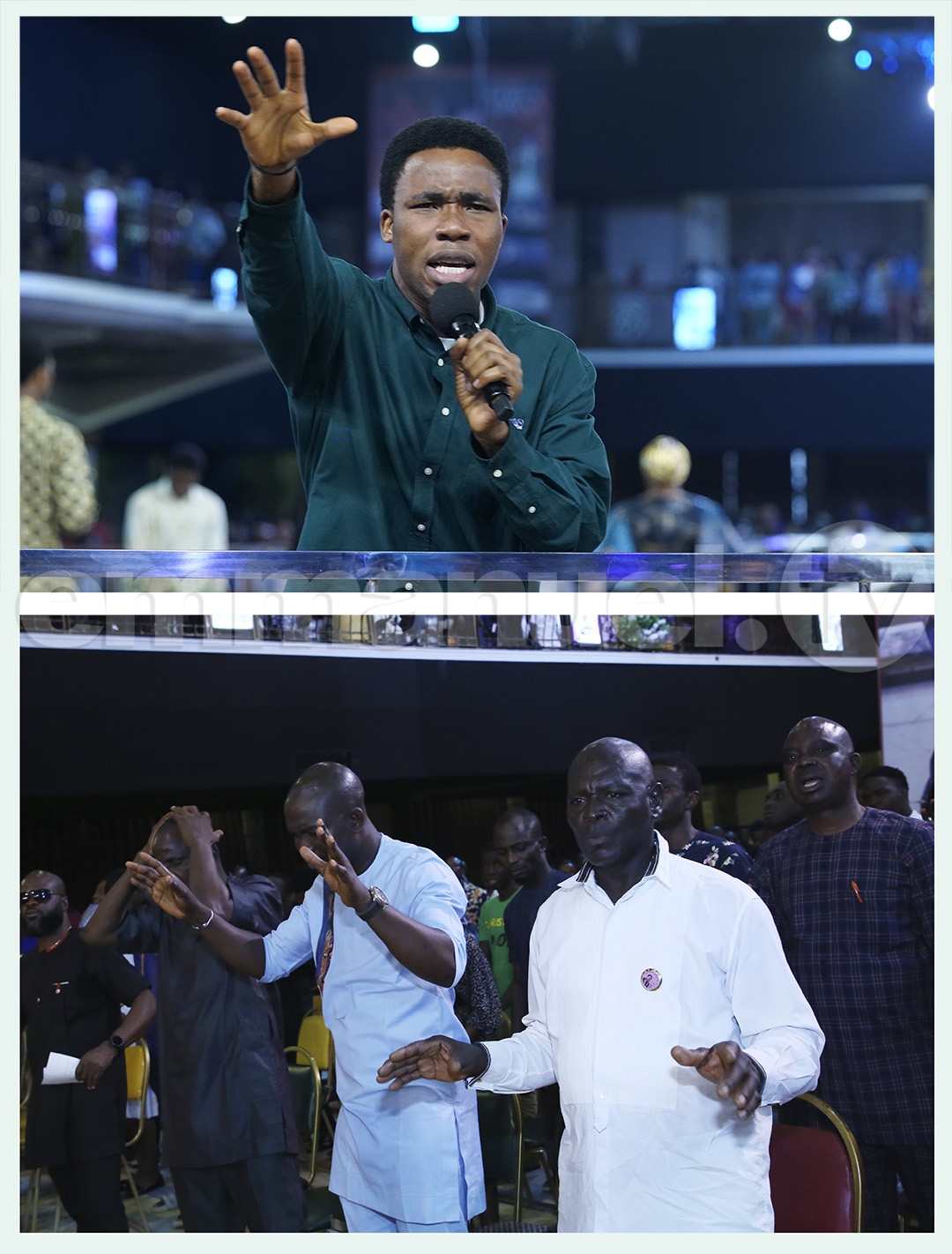El Evangelista Ope dijo a los congregantes que gritaran en voz alta: «¡Oh Señor, por Tu divina misericordia y favor, que la voluntad de satanás sobre mi vida sea rota!».