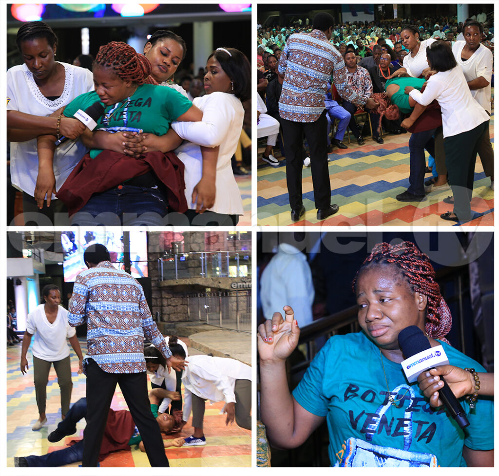 Mientras demonio tras demonio caían de espaldas, la Pastora Evelyn Joshua recordó a las personas las palabras del Profeta T.B. Joshua acerca de no regocijarse simplemente por su liberación sino por el hecho de que sus nombres han sido escritos en el Libro de la Vida.