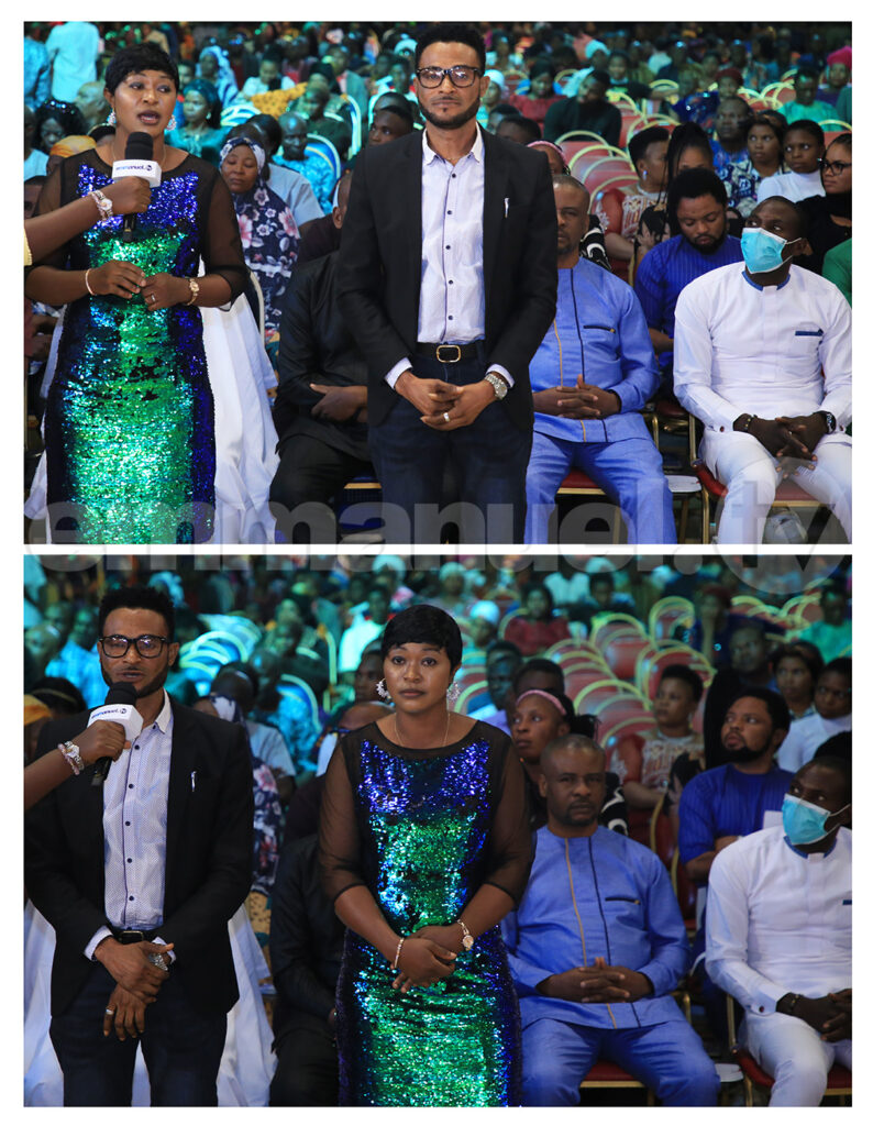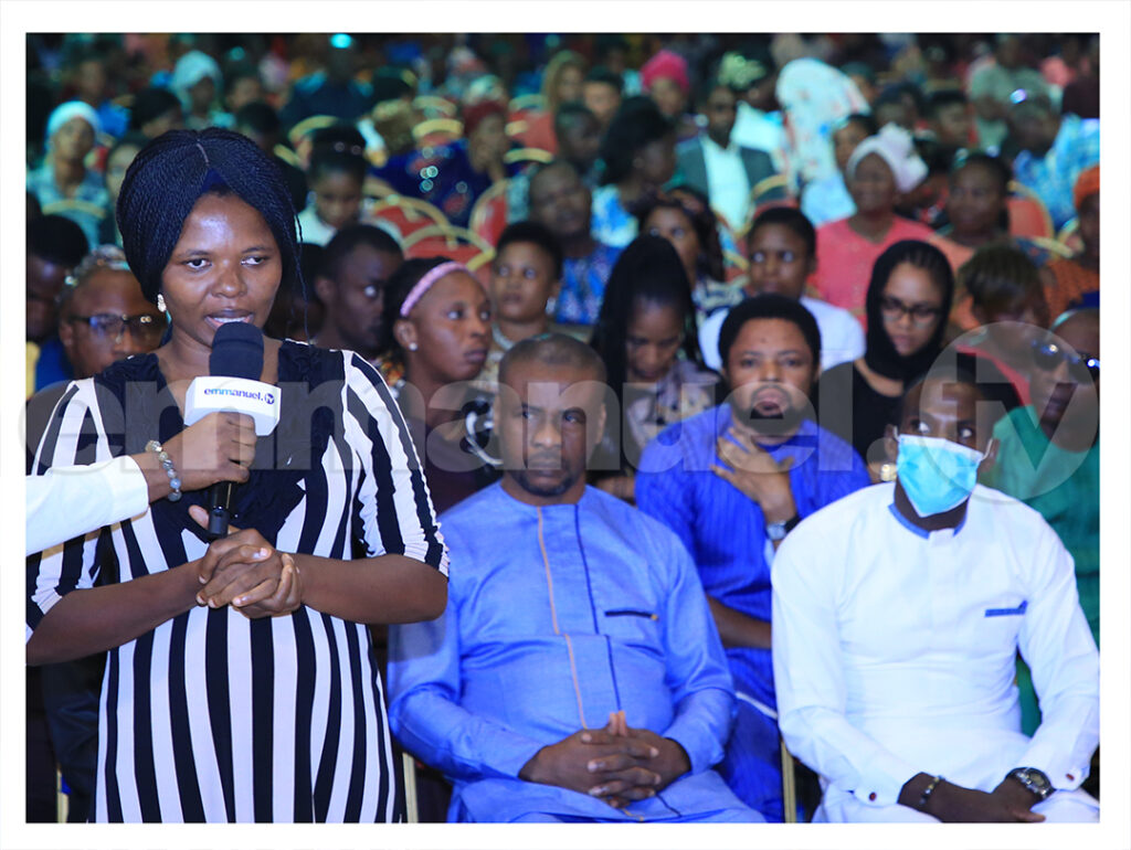 También estaba en la iglesia el 12 de febrero del 2023 Benedicta, quien, mientras crecía, solía comer un poco del pollo sacrificado a los ídolos de la casa de su padre. «No sabía que esas cosas tenían un efecto», dijo. Una de las principales manifestaciones del efecto era el espíritu de enojo que dominaba su vida. Al parecer, la abuela de Benedicta la había dedicado a uno de los ídolos. «Solía sentir un enojo inexplicable hacia mi esposo y cierto hombre solía tener relaciones sexuales conmigo en sueños», recordó. Sin embargo, desde su liberación, Benedicta ha roto toda conexión con el demonio que gobernaba su vida. «Ahora tengo afecto por mi esposo y siempre quiero estar con él», dijo. Con gozo, dijo a la iglesia: «Sigue esperando en Dios; con Él todas las cosas son posibles». Su esposo, David, contó cómo había luchado para que su esposa se animara a seguir Emmanuel TV. También glorificó el nombre de Dios por haber restablecido el afecto entre ellos. Aconsejó a las personas que tuvieran paciencia y mantuvieran la esperanza en Dios.