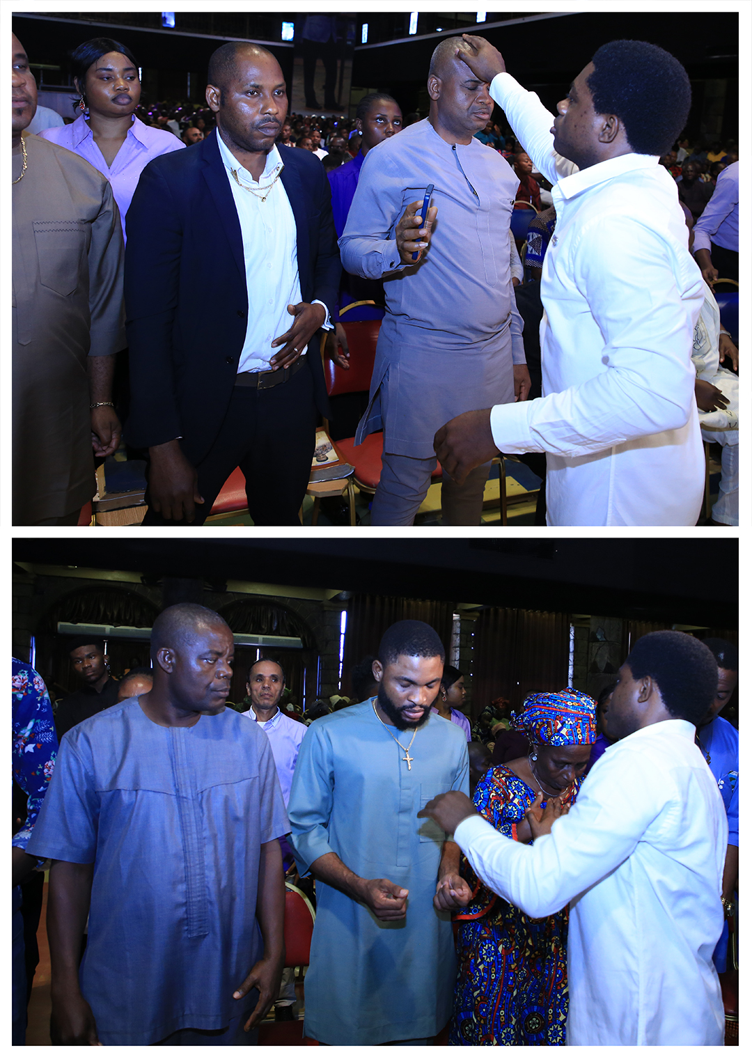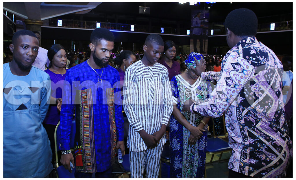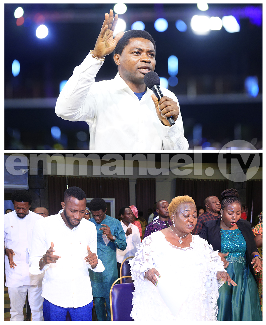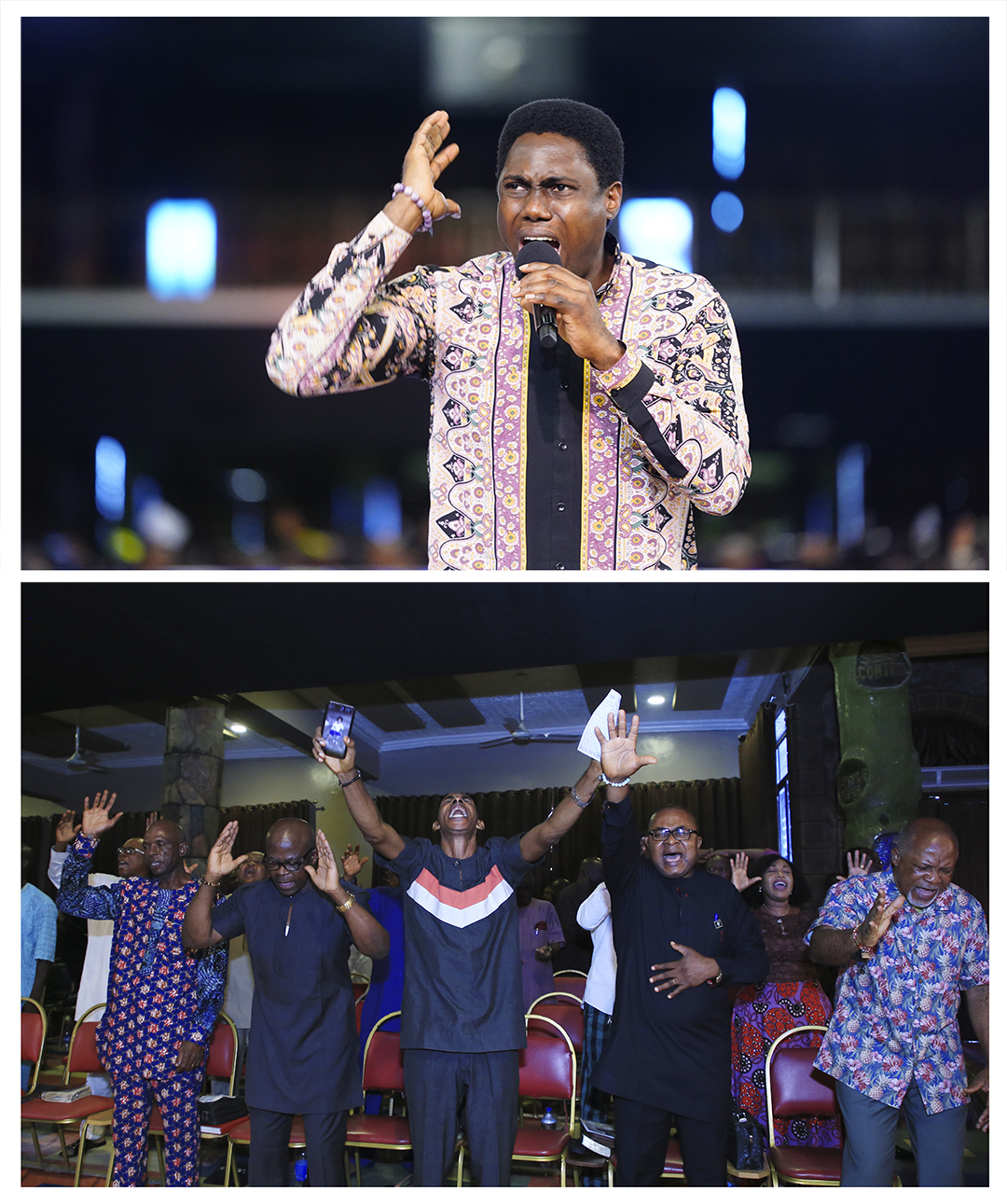 El Evangelista Ope dijo a los congregantes que oraran: «Toda actividad demoníaca en mi vida, te ordeno en el nombre de Jesús: ¡Sea quebrantado! Tú, espíritu de demora, te llamo por tu nombre dondequiera que estés, fuego del Espíritu Santo: ¡Fuera!».