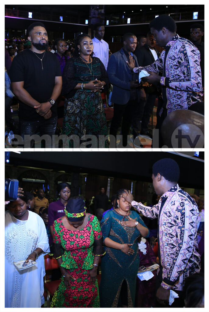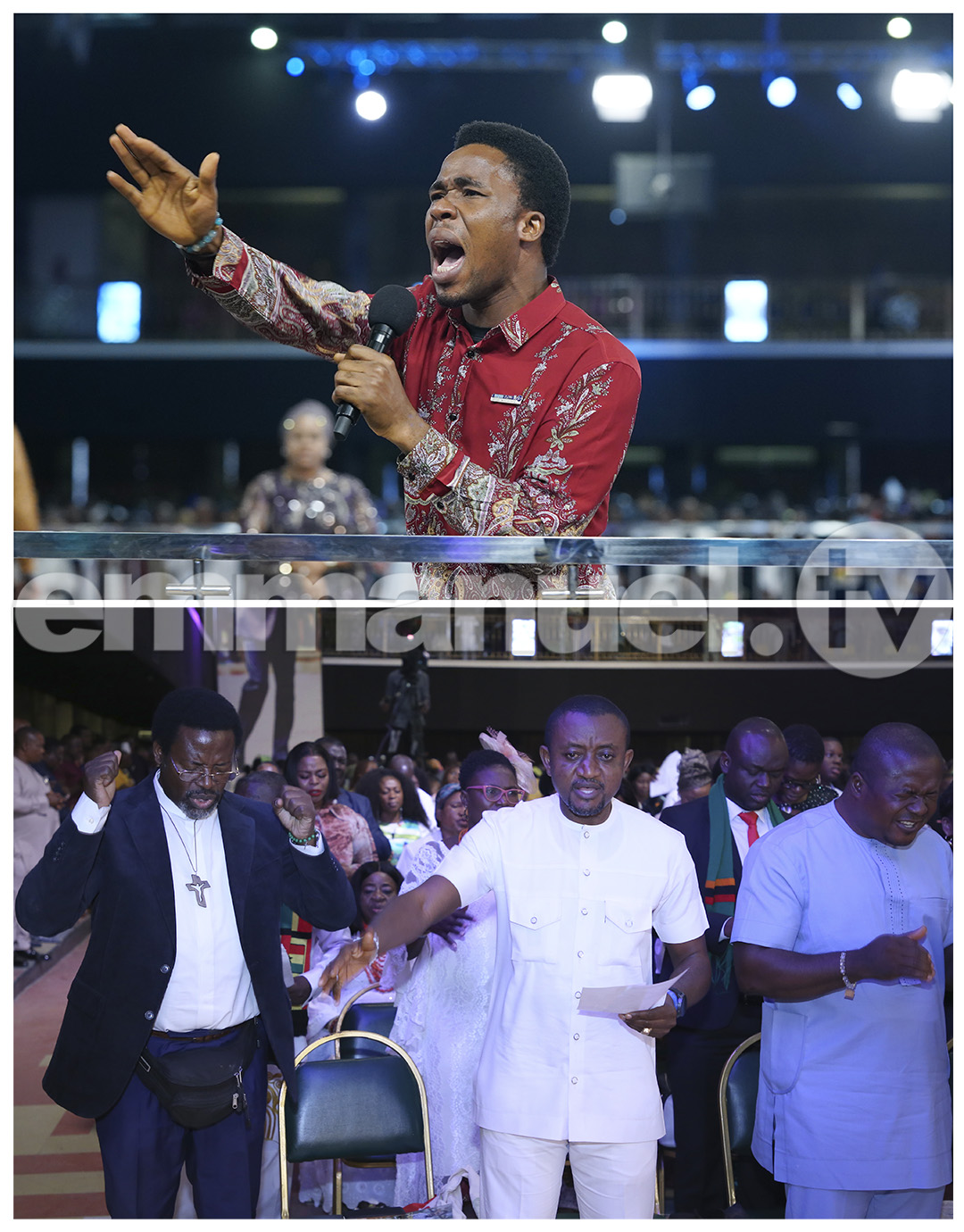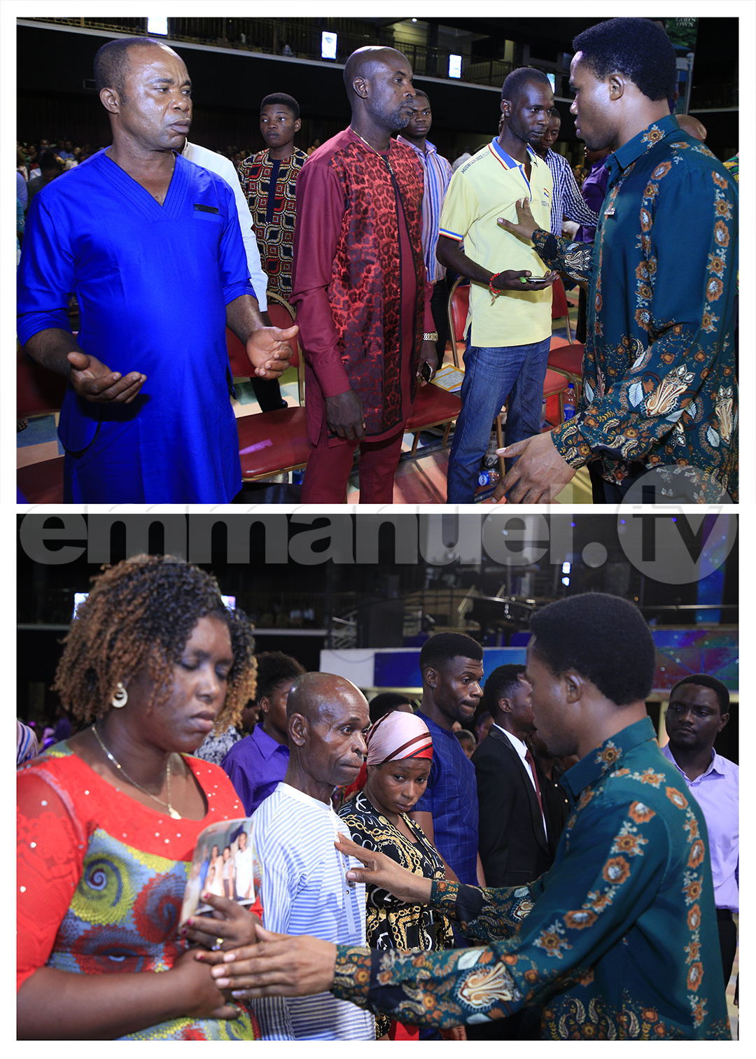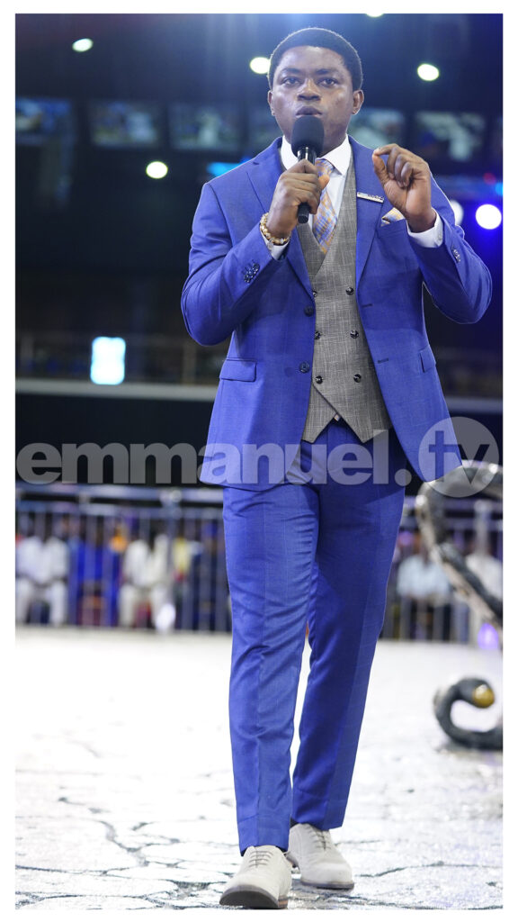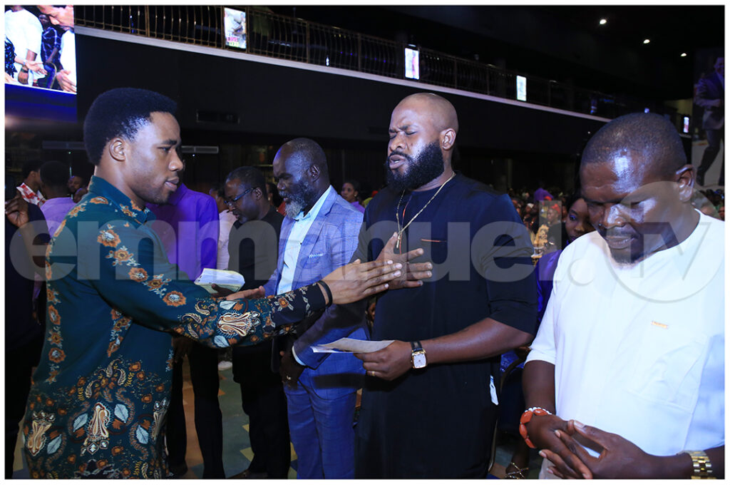 El Evangelista Ope dijo a los congregantes que oraran: «Toda actividad demoníaca en mi vida, te ordeno en el nombre de Jesús: ¡Sea quebrantado! Tú, espíritu de demora, te llamo por tu nombre dondequiera que estés, fuego del Espíritu Santo: ¡Fuera!».
