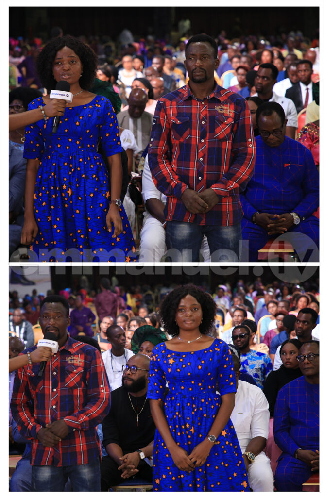 Solo un toque ungido bastó para que el espíritu maligno en Esther se manifestara durante el servicio del 12 de marzo del 2023. El espíritu confesó haber impedido que Ester tuviera otro hijo. Testificando una semana después, Esther recordó que, en su noche de bodas, tuvo un sueño en el que una mujer le advirtió: «Deja en paz a mi esposo». Desde entonces, Esther empezó a tener problemas de salud, incluido asma. Aunque consiguió tener un hijo después de dos años de intensas oraciones, Esther no pudo tener otro bebé porque después tuvo un prolapso de útero. Esa había sido la situación de Esther durante los últimos 11 años, hasta que Dios resolvió su caso. Ahora, tanto la protrusión del útero como el asma han desaparecido. «Ahora puedo caminar largas distancias y respirar bien», dijo emocionada. Aconsejó a las personas: «No pierdas la esperanza; Dios te acompañará hasta el final». Evaristus, el esposo de Esther, contó que la familia de su esposa le había acusado de ser el responsable de los muchos problemas inexplicables de su hija. También contó cómo había llevado su caso a Dios. «Le doy a Dios la gloria, porque todo eso ya es pasado», dijo. A la iglesia le dijo: «Mira a Dios; él tiene la última palabra sobre nuestros problemas».