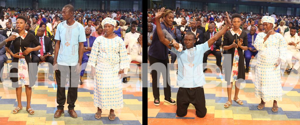 Há quinze dias, a Sra. Chinaza Ekpo era uma das congregantes do Culto de Domingo da SCOAN. Enquanto a sessão de oração em massa prosseguia, o poder de Deus caiu sobre ela e a aflição em seu corpo saiu quando ela urinou incontrolavelmente. No domingo passado, ela voltou à igreja para testemunhar o poder do Senhor sobre sua vida. Constatou-se que ela teve quatro cirurgias de parto no passado e um erro médico onde as enfermeiras falharam em remover os pontos da última cirurgia, causando vazamento de líquido. Enquanto as orações prosseguiam, Chinaza sentiu calor e dor no estômago antes que o fluido começasse a sair dela duas semanas atrás. Para demonstrar sua cura, Chinaza pressionou com força o estômago antes de terminar seu testemunho. “Continue acreditando em Deus e confiando nEle”, ela aconselhou a igreja. Seu marido também aconselhou as pessoas a depositarem sua fé em Deus onde quer que estejam.