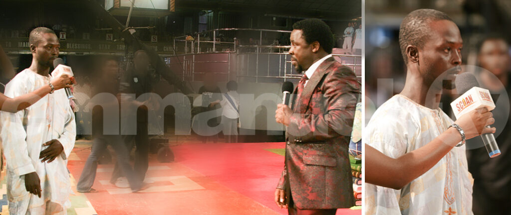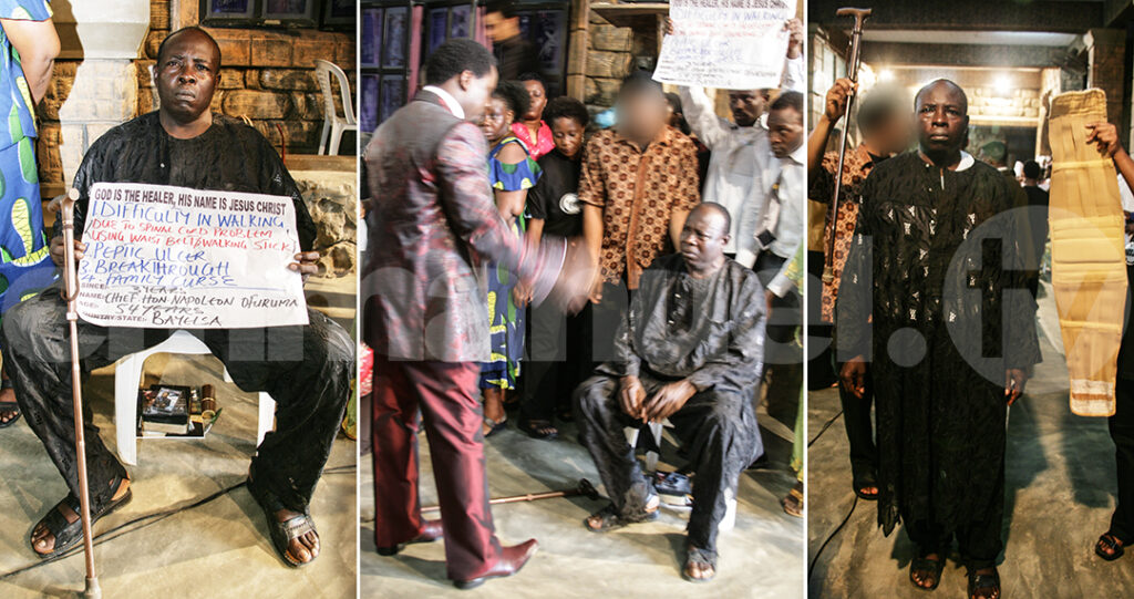 Em seguida, veio um testemunho de Patrick, que havia retornado a SCOAN com sua esposa e filhos para testemunhar sobre a cura milagrosa e o progresso feito desde então. Por ter fraturado os ossos da parte inferior da perna direita, Patrick ficou, por muito tempo, incapaz de ficar de pé ou andar – muito menos trabalhar para o pão de cada dia. Trazido para a igreja em um carro, ele sentou-se impotente no banco de trás, com as pernas esticadas à sua frente.