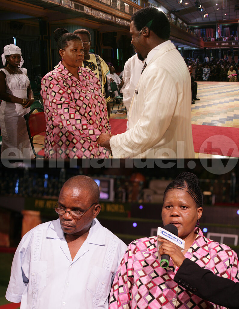 No caso de Catherine, uma sul-africana, o Profeta TB Joshua começou perguntando: “Onde está sua mãe?” Ele então disse que ela havia sido criada por uma mulher que não era sua mãe e que nutria dores emocionais desde a infância. Ele também disse que havia uma mulher em sua família que era considerada uma espécie de “deus” por causa de sua capacidade de ler as palmas das pessoas. Catherine também foi informada de que ela age como um homem em casa. Por fim, instando-a a ler o Salmo 61, o homem de Deus contou a Catherine sobre a morte de pessoas em sua família. Catherine confirmou todas as profecias e prometeu fazer a vontade de Deus doravante.