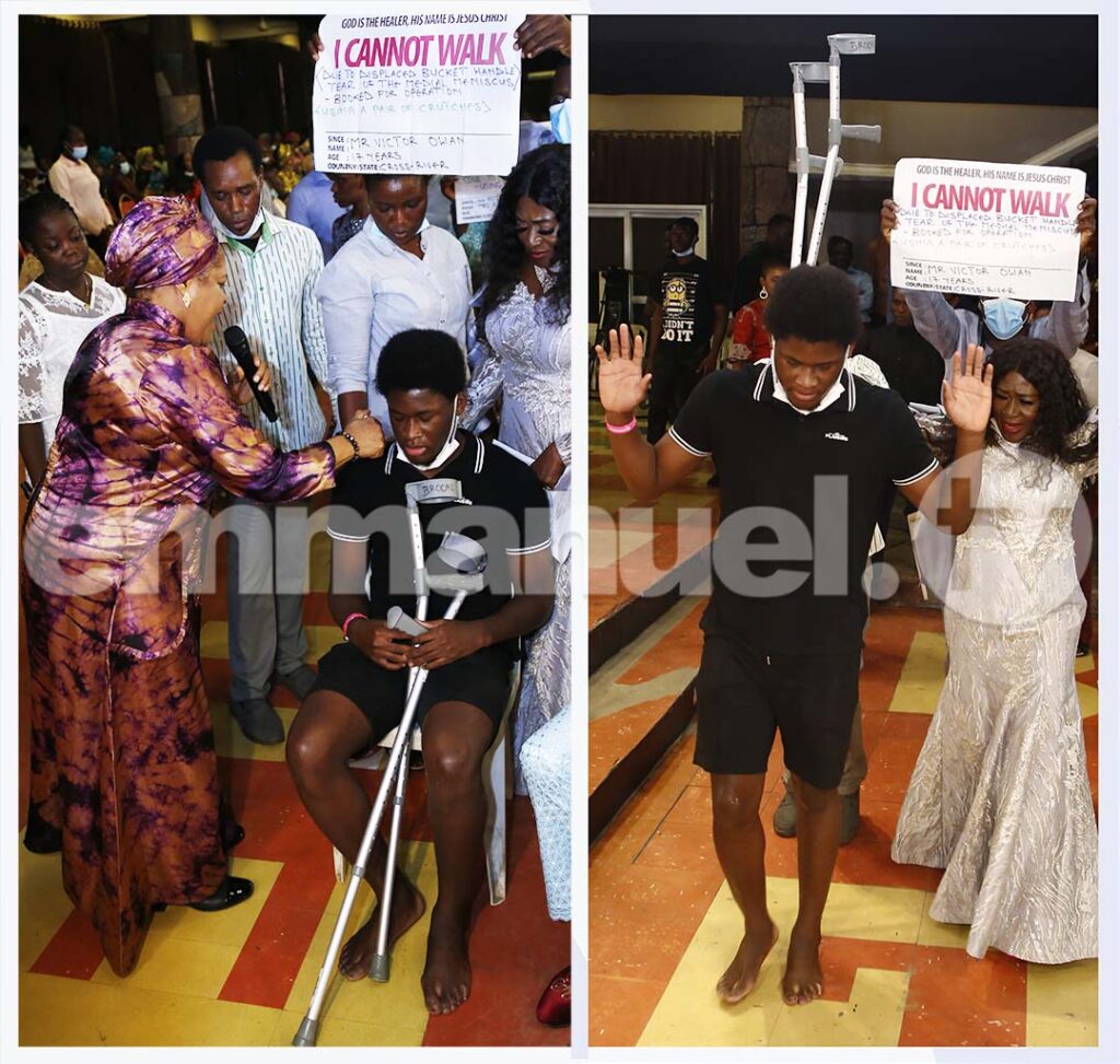 Também durante o culto dominical de 9 de janeiro, Ngueko, outra camaronesa, foi curada de hipertensão, uma condição que não permitia ela levar uma vida confortável. Apesar de ser submetida a inúmeros tratamentos médicos, Ngueko não conseguiu obter nenhum alívio duradouro. No entanto, sua história mudou depois que ela recebeu a ministração da Nova Água da Unção. Após ser ministrada, ela imediatamente recebeu o poder do Espírito Santo e o espírito maligno, responsável pela hipertensão de Nguek, foi embora. No dia seguinte à ministração, quando Ngueko mediu sua pressão arterial, ela descobriu que havia voltado ao normal. Agora, ela pode fazer as coisas que não conseguia fazer antes e não precisa mais depender de um coquetel de remédios. A filha de Ngueko, Angel, falou ao lado de sua mãe e agradeceu a Deus pela cura que agora também a libertou de ter que cuidar de sua mãe o tempo todo. “Se os médicos falharem, Jesus não falhará”, disse Ngueko enquanto aconselhava os congregados a terem fé no poder de Deus.