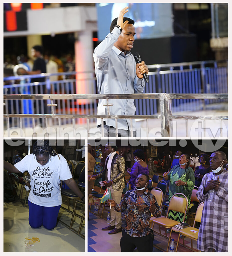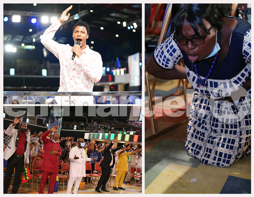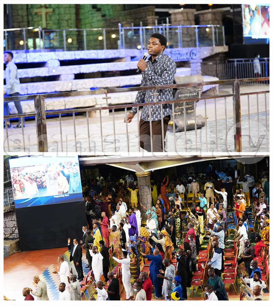 Iniciando o momento de Oração em massa ao lado dos evangelistas Joseph, James e Chisom, a pastora Evelyn Joshua orou: “Todo desapontamento – seja removido, no poderoso nome de Jesus Cristo!”