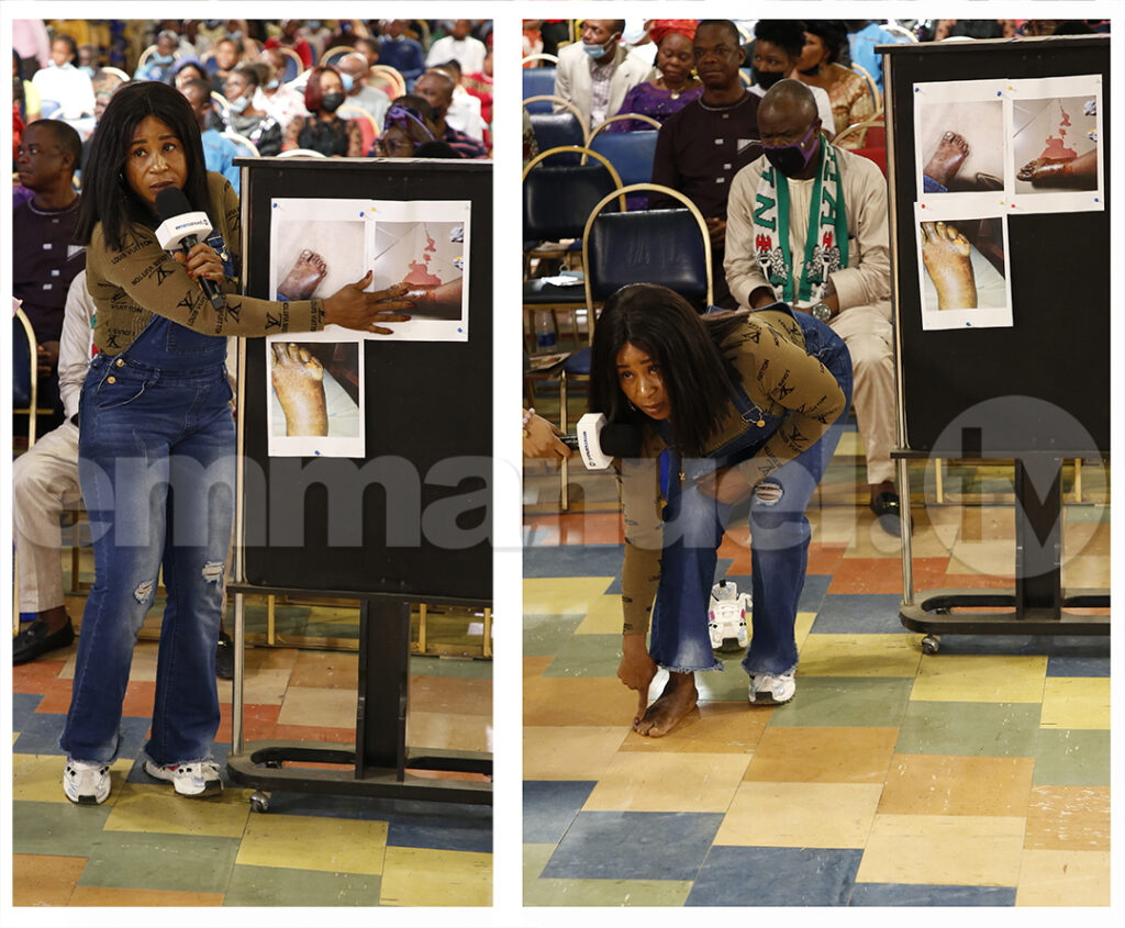 Da mesma forma, Amarachi recebeu sua cura da espondilose cervical, após a ministração da Nova Água da Unção hoje. Durante a oração, ela vomitou as substâncias venenosas em seu sistema e agora não precisa mais do colar cervical. Ela aconselhou as pessoas a confiarem em Deus. “Só Deus pode curar”, disse ela.