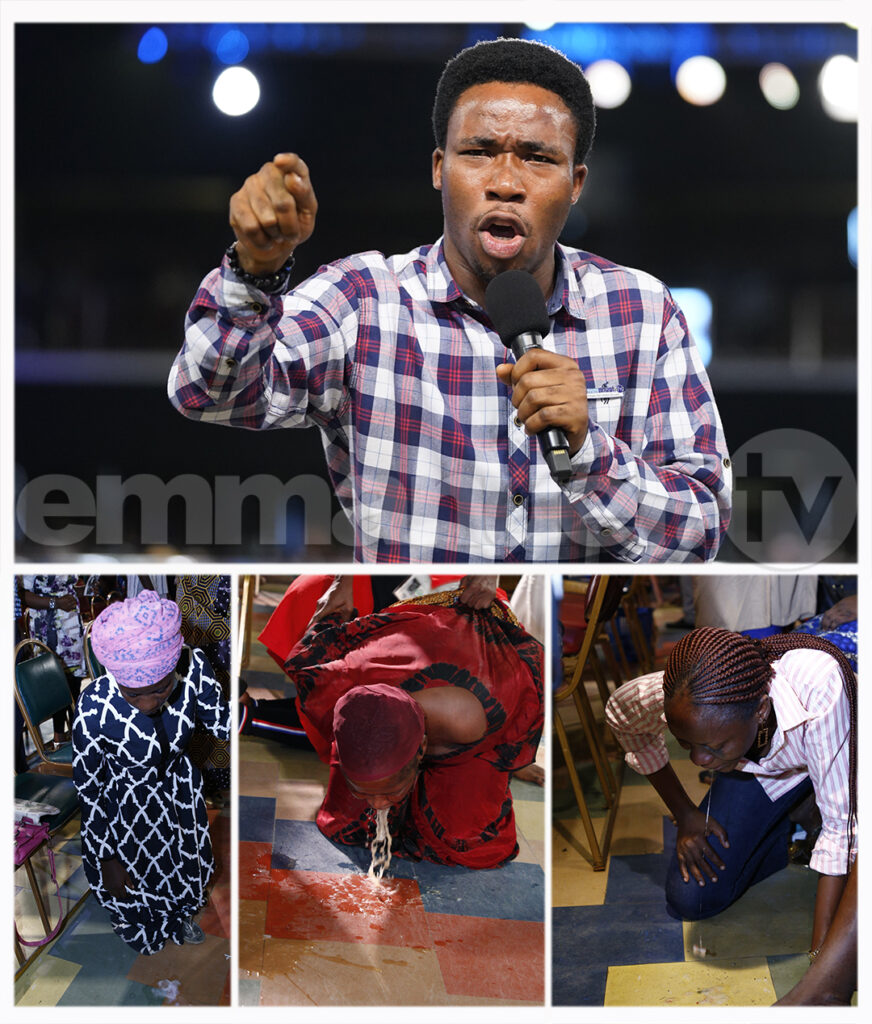 Enquanto a mulher de Deus orava e ministrava a Nova Água da Unção, no poderoso nome de Jesus Cristo, cura e libertação para o avanço começaram a se manifestar instantaneamente. Muitos vomitaram as substâncias venenosas de seus organismos, depois que os espíritos contrários neles reagiram, e depois saíam, à menção do nome que está acima de qualquer outro nome.