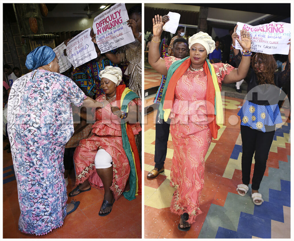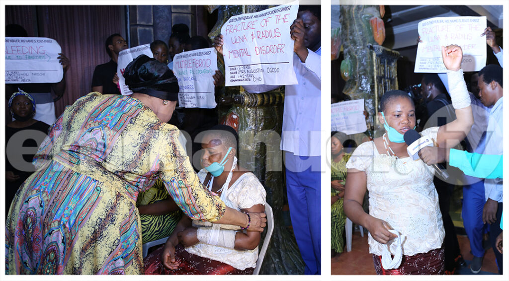 Então no poderoso nome de Jesus Cristo, ela começou a ministrar cura e libertação. Orou por mulheres grávidas cujos bebês estavam posicionados de forma inadequada, bem como por pessoas com dificuldade para andar, que estavam com hérnias, úlceras abertas, fraturas, miomas múltiplos, sangramento, barriga inchada, problemas no fígado, hemorroidas, doenças de pele e distúrbios mentais. Muitos, aos receberem a oração caíram sob o poder da unção, debatendo-se e vomitando todas as substâncias venenosas em seus corpos. Todos eles foram curados, libertos e abençoados completamente!