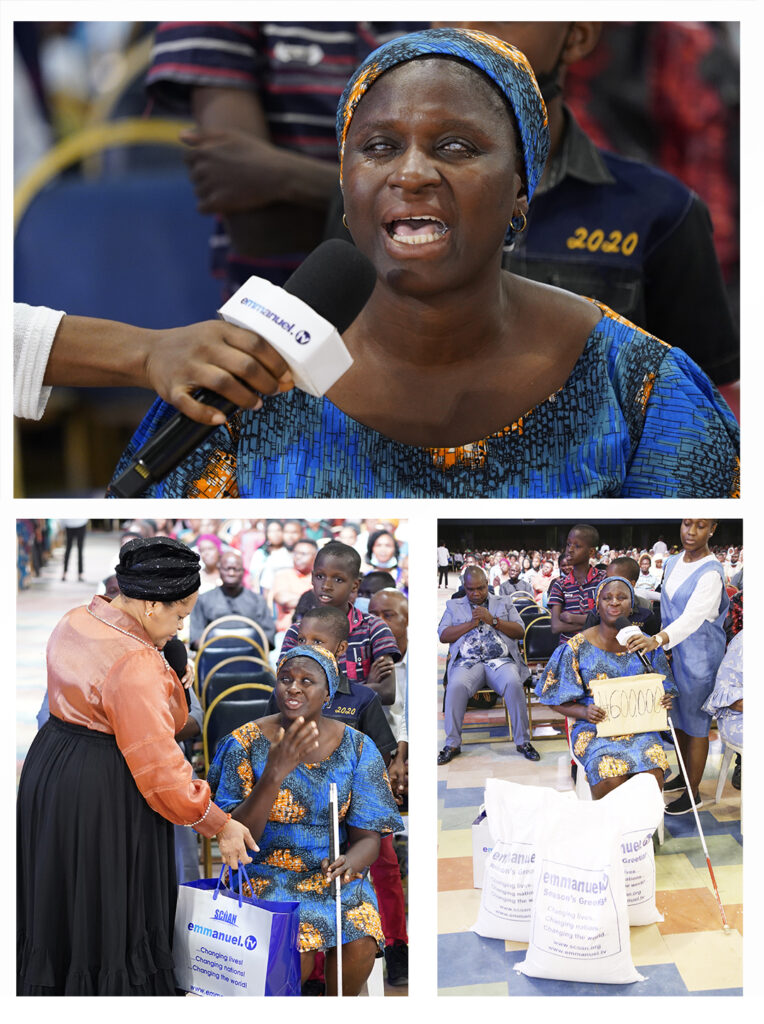 Durante o culto, duas mães com deficiência visual pediram apoio financeiro dos parceiros da Emmanuel TV e da Família SCOAN em todo o mundo. A primeira a falar foi Bukola, cujo negócio de panificação praticamente entrou em colapso devido a graves desafios de financiamento. Como mãe solteira, ela não conseguiu atender às suas necessidades e as de seus filhos, incluindo as taxas escolares.