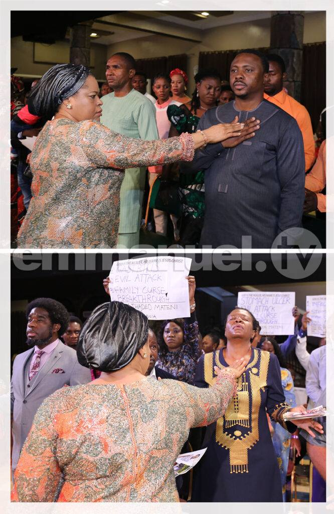 Depois, a mulher de Deus foi acompanhada pelos evangelistas James, Ope, Joseph e Chisom durante a oração com imposição de mãos. Muitos com espíritos contrários caminharam para a liberdade divina, com todos os espíritos imundos confessando antes de serem expulsos.