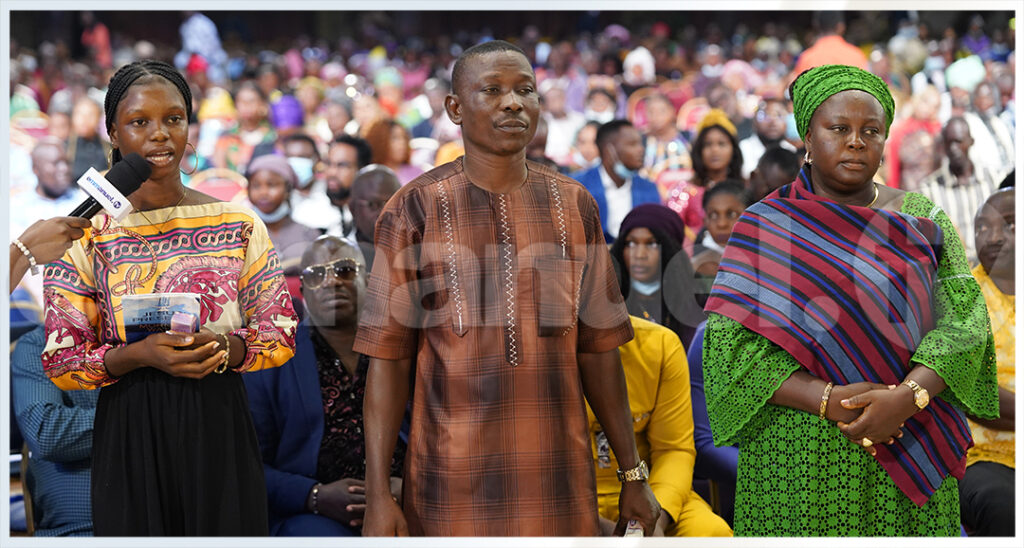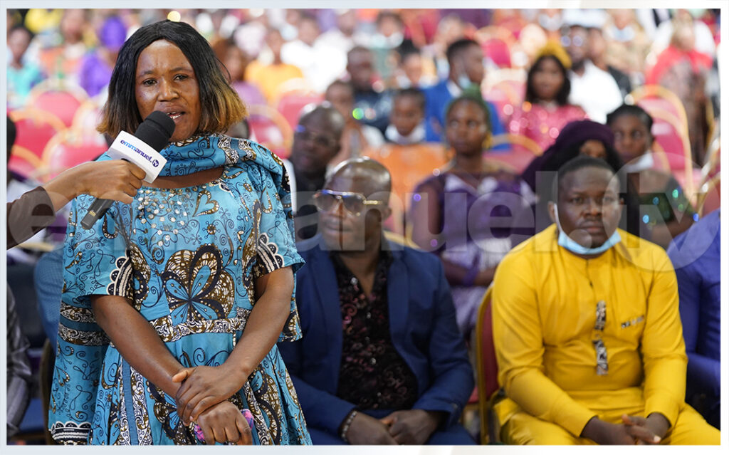 No domingo, 12 de junho de 2022, Favour do Estado de Benue recebeu oração pela luxação do tornozelo que ela sofreu há mais de 13 anos. Por causa da lesão, ela foi incapaz de fazer muitas coisas, incluindo andar rapidamente e usar certos tipos de calçados. “Senti uma sensação de frio dentro de mim depois que ela me tocou”, disse ela sobre o toque da mulher de Deus. Agora ela pode andar rapidamente e usar saltos altos. Ela também agora está livre de todos os bloqueios que a retinham. Como parte da benção que ela recebeu de Deus, Favour também recebeu cura instantânea após duas semanas com coceira no corpo. Ela também foi liberta do marido espiritual que vinha perturbando sua vida. Ela aconselhou as pessoas a irem à igreja com fé em seus corações.