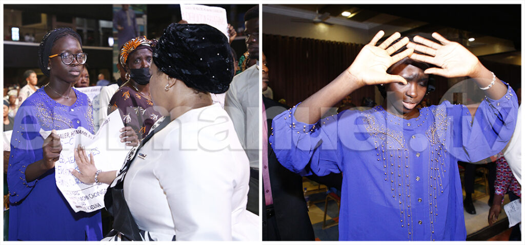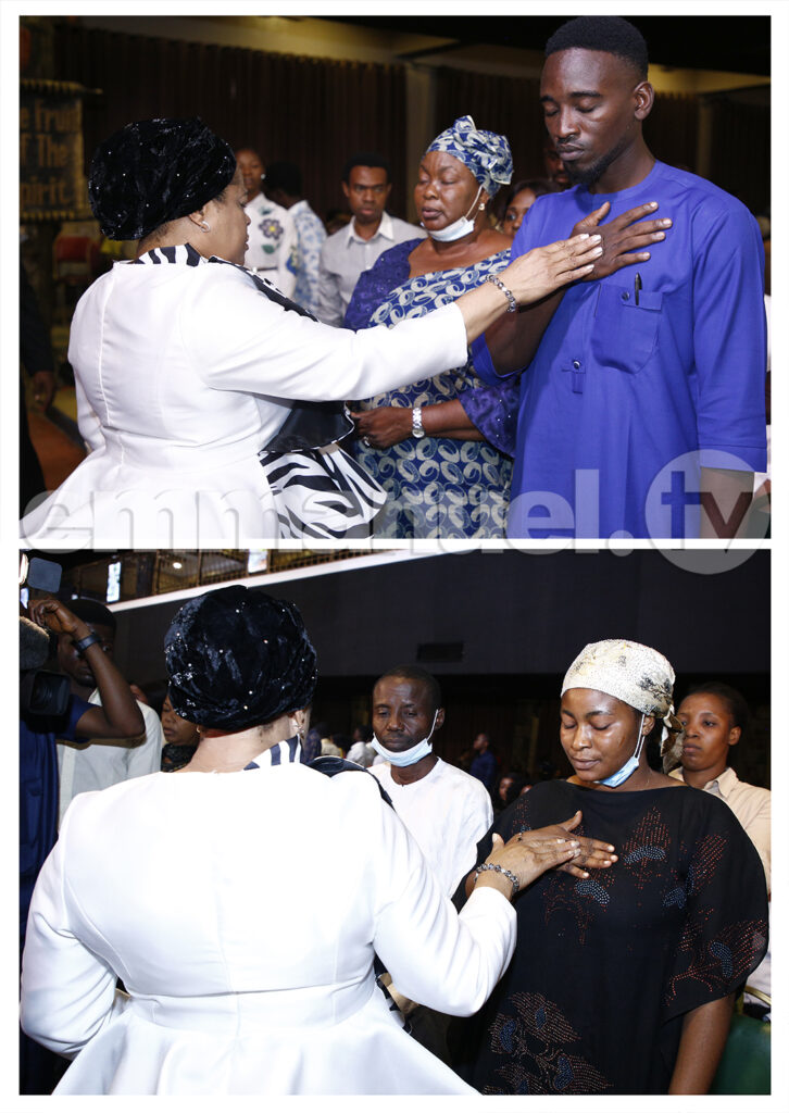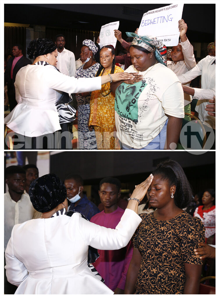 Tivemos mais uma demonstração do poder de Deus a Fila de Oração, que foi seguida pela imposição de mãos. Antes de começar, a pastora Evelyn Joshua pediu a Deus, em nome do povo: “Deus Pai, permita que sua cura, libertação e poder de bênção caiam em suas vidas, no poderoso nome de Jesus Cristo! Pai, remova todo o mal em suas vidas! Dê-lhes paz, conforto, cura, no poderoso nome de Jesus!” Depois disso, a mulher de Deus passou a impor as mãos sobre pessoas com diferentes problemas cem seus corpos e mentes, causados por satanás e seus agentes.