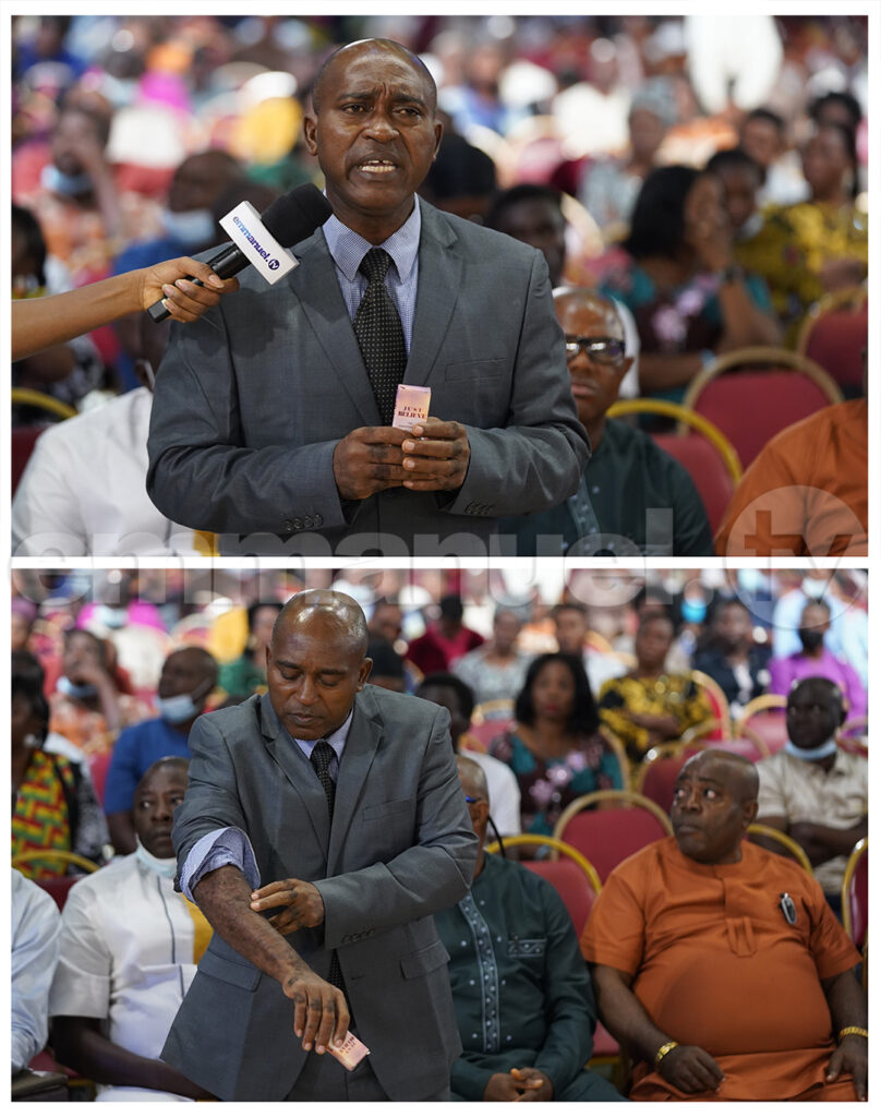Quando uma mão ungida tocou sobre ele durante o culto de 26 de junho de 2022, Emmanuel imediatamente perdeu as forças, foi quando o Espírito de Deus foi trabalhar contra o espírito maligno em sua vida. Quando perdeu toda a força, Emmanuel caiu impotente nas mãos dos obreiros, que conseguiram segurá-lo, enquanto o espírito nele se gabava em vão. Os problemas de Emmanuel começaram após seu nascimento na aldeia, quando seus pais o dedicaram a um ídolo da família chamado ‘Ajoku’. “O espírito maligno começou a me manipular”, lembrou Emmanuel no domingo, 3 de julho de 2022. “Esse espírito dominou meu cérebro e me tornei um aluno pouco inteligente quando cheguei à terceira série do ensino médio”, disse ele à igreja. Para resgatar Emmanuel do ridículo, um tio o levou para Lagos e estabeleceu para ele um comércio. Quando Emmanuel começou a ganhar um bom dinheiro, o espírito o levou a embarcar em viagens sem sentido, das quais ele não voltava para casa até que todo o dinheiro estivesse esgotado. O ciclo continuou se repetindo. Em uma ocasião, Emmanuel deixou todos os itens caros que havia comprado para sua mãe e voltou para casa de mãos vazias, tendo subitamente perdido o juízo. Em lágrimas, ele também falou sobre como o espírito lhe deu úlceras e tornou impossível para ele se relacionar com uma mulher. Ele teve dois longos namoros – um chegou a durar dez anos, porem haviam terminado. A mulher com quem Emmanuel finalmente se casou foi devido a um movimento desesperado da família dela, que tiveram que acelerar o processo de namoro, renunciando a alguns costumes que levariam tempo. O ídolo da família também deu a Emmanuel o espírito de luxúria e o desejo de fazer o mal. O espírito o questionava: “Por que você deveria fazer o bem o tempo todo”? Para a glória de Deus, desde sua libertação em 26 de junho, Emmanuel vive a paz divina. “Agora estou dormindo como um bebê”, disse ele ao testemunhar em 3 de julho, “as úlceras e hemorroidas que eu tinha desapareceram e os espíritos não lançam mais maus pensamentos na minha mente”. Ele completou o testemunho com palavras de conselho: “Quero encorajar as pessoas a responderem aos ensinamentos do Profeta TB Joshua”.