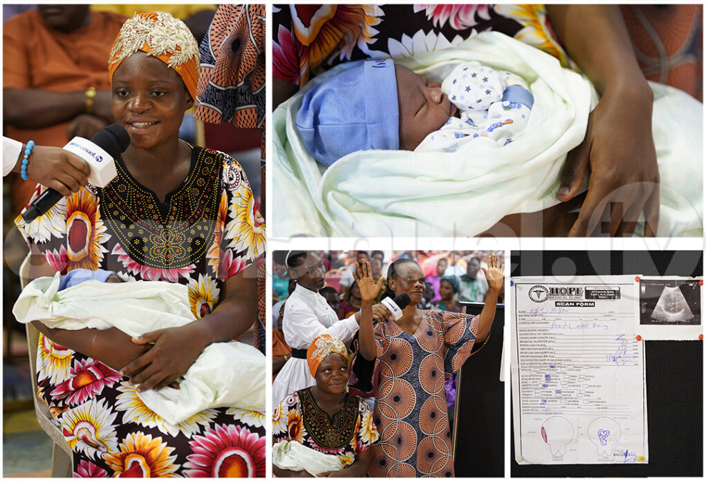 Enquanto o culto estava acontecendo, Helen deu à luz um menino – mais um bebê da Sinagoga! Horas após o parto, ela testemunhou sobre como estava sofrendo com a aflição de um marido espiritual, que ameaçava tirar sua vida. Embora ela tenha recebido uma data prevista do parto, para o dia 17 de julho, e sua gravidez estivesse tendo algumas complicações, Helen teve seu bebê sem nenhum problema, pois o evangelista ministrava oração sobre ela com a Nova Água da Unção. Curiosamente, um exame tinha mostrado que o bebê de Helen era uma menina. Ela aconselhou as pessoas a não desistirem de Deus.