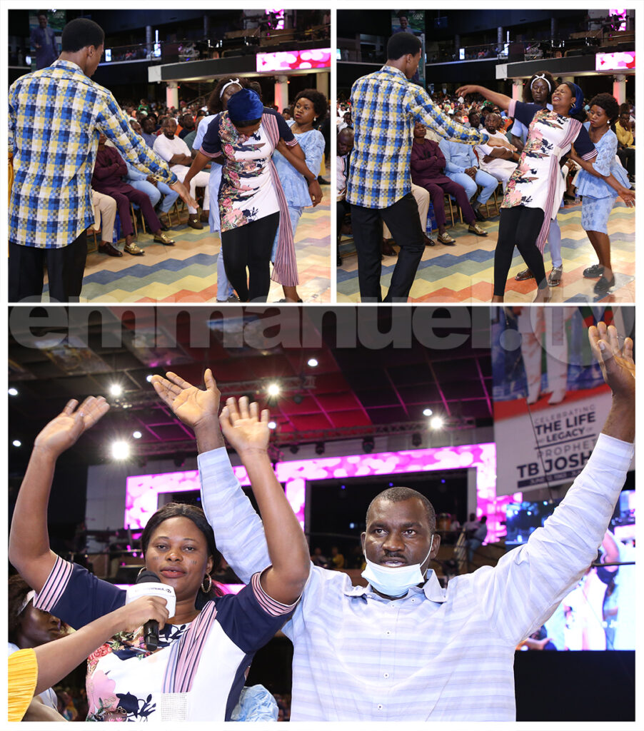 Helen testemunhou sobre sua libertação do espírito da morte, que perseguia sua família desde 2008, após a repentina perda de dois de seus irmãos– cada um ocorrendo durante um período festivo. Em 2010, a mãe de Helen faleceu, e pouco depois perdeu seu pai. Com o passar do tempo, a família se aproximou de alguns “contratados de oração” para afugentar o espírito responsável pela morte na família, mas o processo falhou. Alguns anos depois, mais dois irmãos faleceram. Infelizmente, pouco depois mais um irmão faleceu, que também morreu perto de um período festivo. Helen percebeu que algo acontecia antes das mortes: ela sonhava com a casa de seu pai sendo inundada. O mesmo espírito responsável pelas mortes na família também tornou Helen irritada e agressiva. Em uma ocasião, ela se incendiou e quebrou o para-brisa do carro do marido e depois foi denunciar na delegacia. Dois anos atrás, Helen adoeceu e temeu estar prestes a morrer. No entanto, quando ela começou a seguir as ministrações do Profeta TB Joshua na Emmanuel TV, ela recebeu sua cura. Quando ela participou do culto de domingo de 24 de julho de 2022, Helen estava novamente doente. No entanto, para a glória de Deus, ela agora foi libertada no poderoso nome de Jesus Cristo. “Agora não tenho mais nada a ver com o marido espiritual ou o espírito de raiva”, ela se emocionou. O marido de Helen, Kingsley, contou que a chave do carro deles havia desaparecido quando planejavam ir à igreja. Em outra ocasião, a chave do carro apareceu guardada no bolso de Kingsley enquanto ele dormia. Naquela manhã chuvosa ele descobriu que os limpadores do carro de repente pararam de funcionar. No entanto, Helen chegou à igreja e recebeu sua libertação. “Um dia Deus o livrará”, disse Kingsley, enquanto aconselhava as pessoas a ficarem com Deus. O filho homem restante da família, Ayo—um ministro da Palavra—também testemunhou sobre como Deus o livrou do espírito de morte súbita. Ayo se descreveu como um seguidor do ministério do profeta TB Joshua nos últimos 19 anos. Com humor, ele contou como sua esposa tinha sido super frutífera, especialmente como ela estava tendo um filho a cada ano. “Tenho nove filhos e sofri ainda mais por tudo que tirou a vida dos meus cunhados”, disse ele rindo. Ele também disse que a Palavra de Deus o ajudou a superar as forças responsáveis ​​pela pobreza e morte prematura. Ele, portanto, aconselhou as pessoas a ficarem com Deus. De sua parte, Helen aconselhou as pessoas: “Nunca desistam de Deus – procure uma igreja viva”.