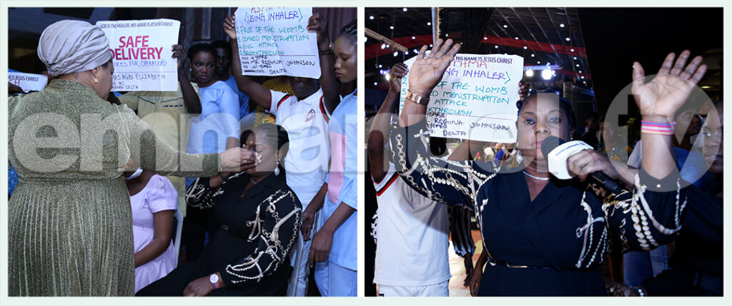 E porque Deus sempre honra Seu nome e Sua Palavra, uma série diversificada de doenças e condições foram eliminadas pelo poder do Deus Vivo enquanto a mulher de Deus orava. Para aqueles que vieram com casos especiais como doenças mentais, epilepsia, asma, úlceras, doenças de pele e complicações na gravidez, etc… Deus mostrou sua mão poderosa através da mulher de Deus.