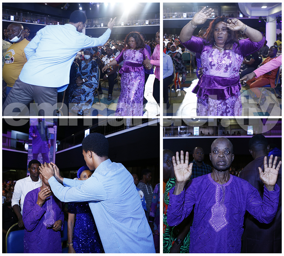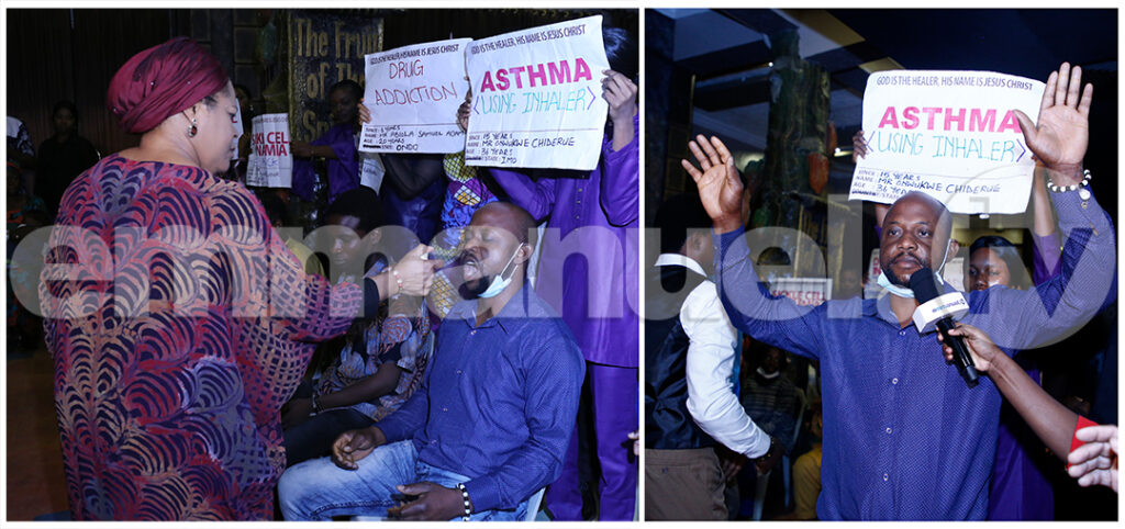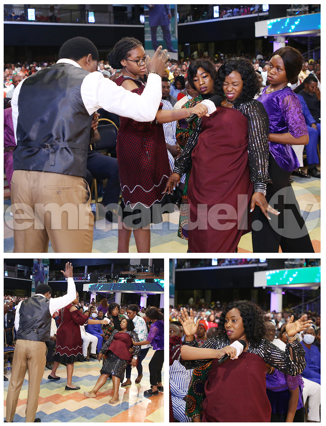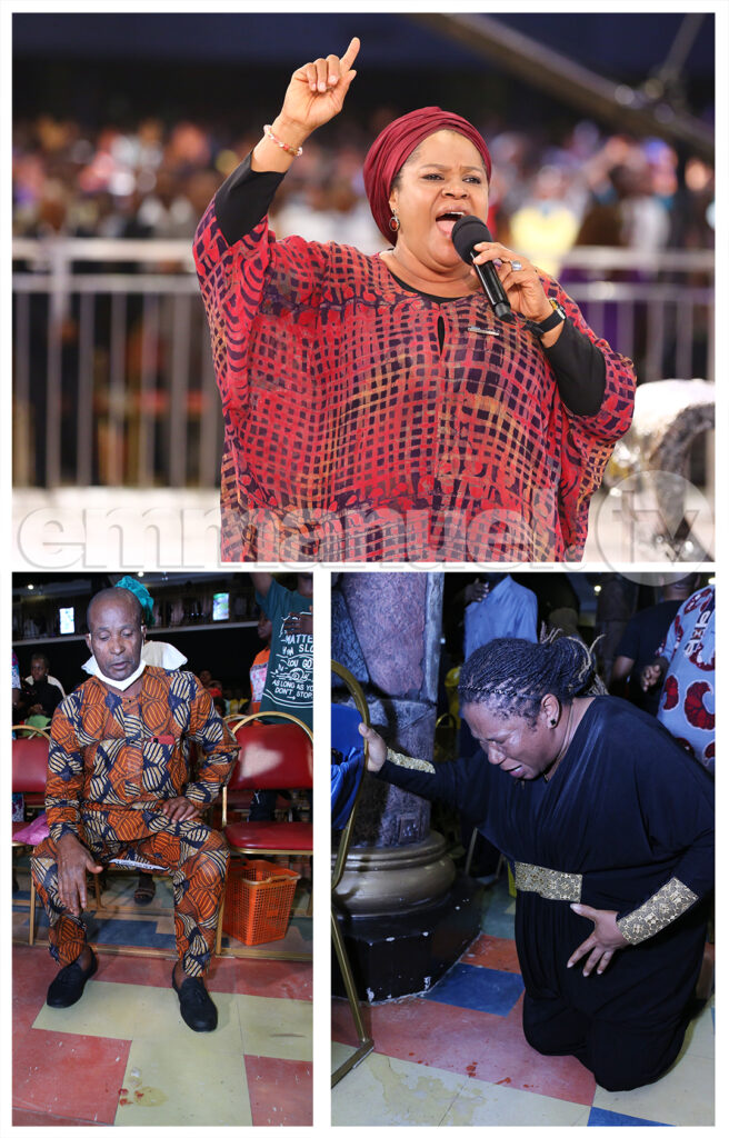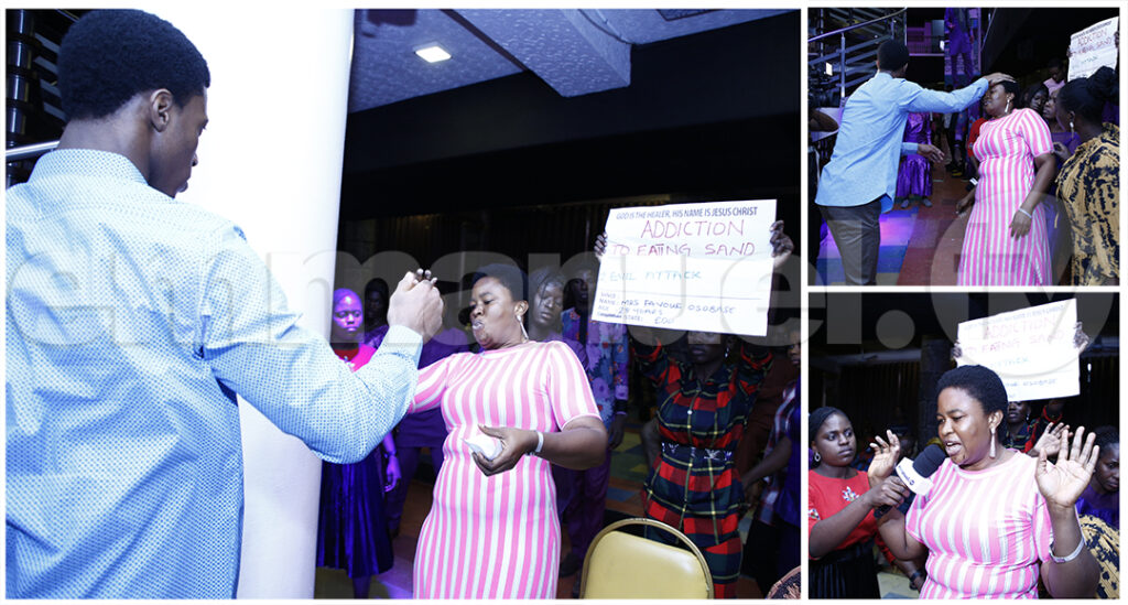Pouco depois, a mulher de Deus se juntou aos evangelistas James e Joseph para a sessão geral de imposição de mãos, com centenas a mais de pessoas recebendo cura e libertação de vários problemas, incluindo o vício em comer areia.