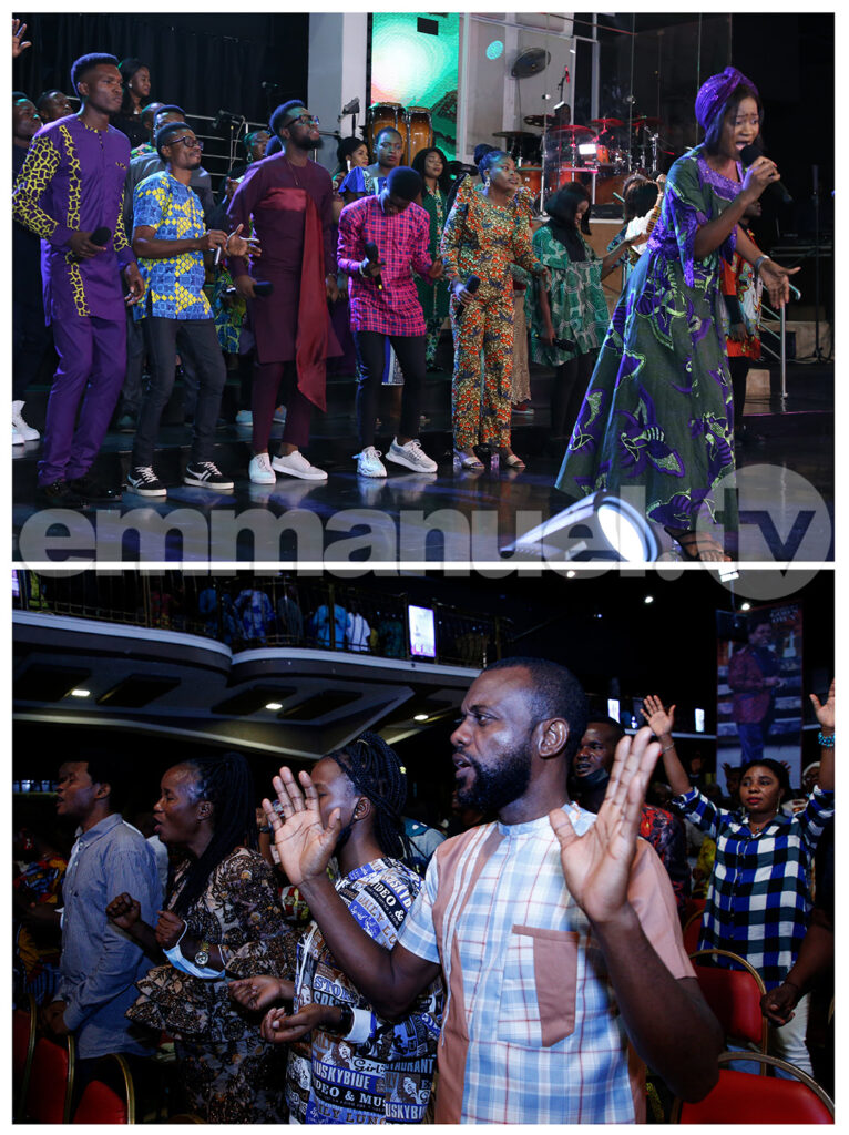 E quando o Coro da Emmanuel TV se juntou ao culto, eles começaram com um solo de Kayode, que apresentou um número de Jim Reeves em busca de refúgio em Jesus Cristo. A letra ecoou nas mentes de todos: “Por favor, guie-me através da escuridão/Tome minha mão, O Precioso Senhor/e ajude-me em meu caminho”. Além disso, enquanto o coro cantava sobre a quebra de todas as correntes pelo poder em nome de Jesus, os presentes começaram a sentir a presença do Espírito Santo, houve muitos vômitos ao cair sob o poder da unção.