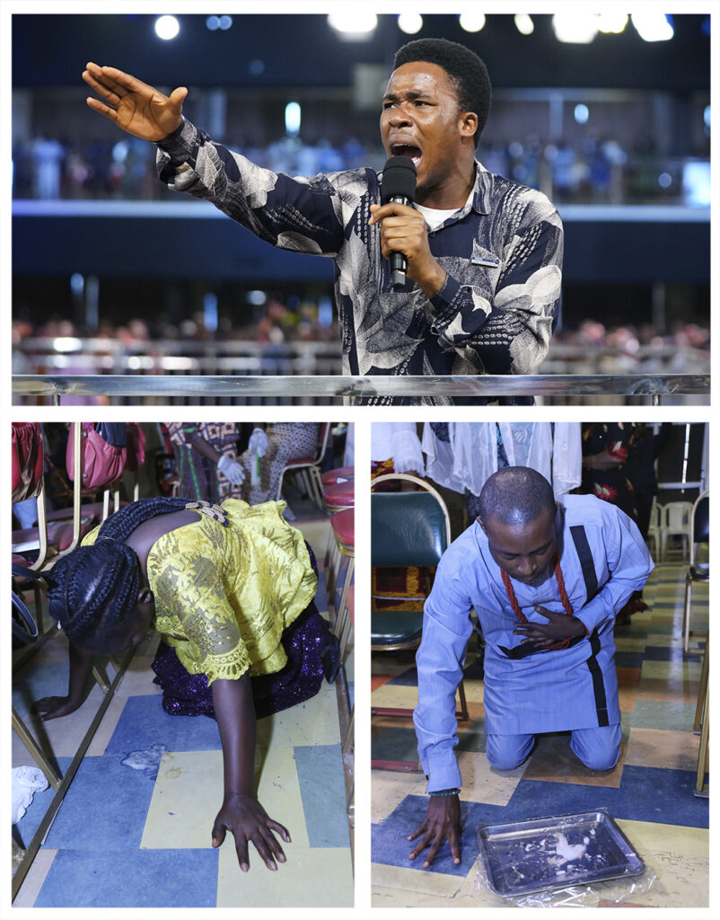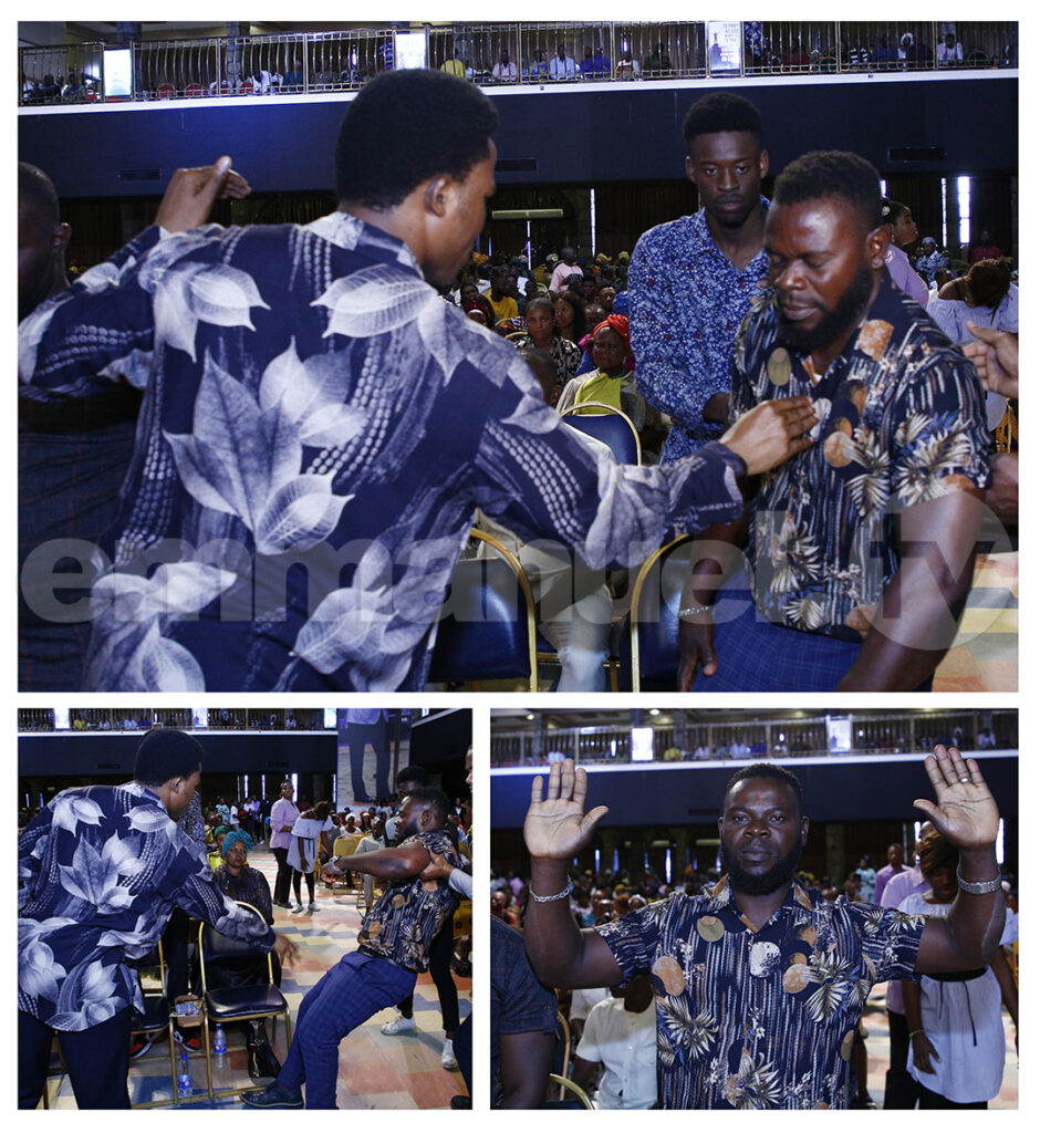 O evangelista Chisom disse aos fiéis: “Comande esse espírito contrário a sair! Aquele espírito de seu passado que ameaça sua vida, sua paz – mande-o sair!”