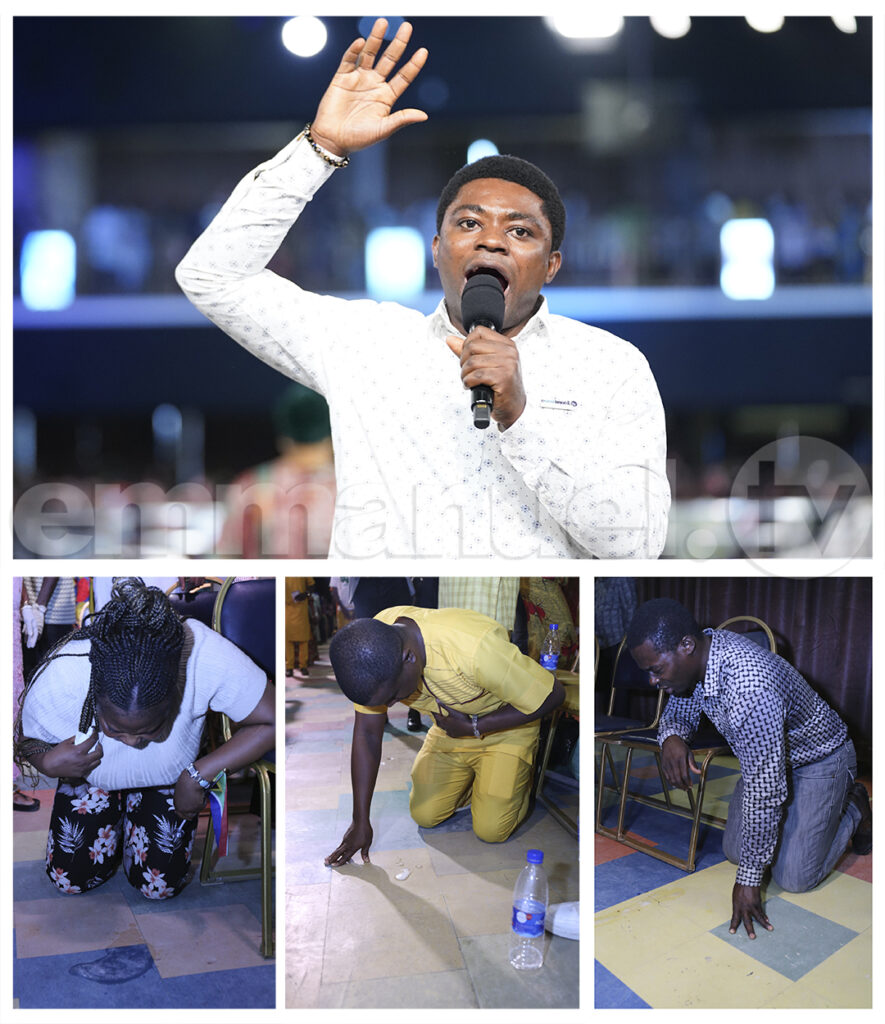 O evangelista James disse aos fiéis: “Todo espírito que ameaça seu destino – espírito imundo, espírito familiar – comande-o para que saia! Esse espírito desafiando seus negócios, família, destino – diga: Fosra!” Ele também orou: “Seja o que for que satanás deve ter usado para se conectar você, seu negócio a ele mesmo – seja quebrado, em nome de Jesus!”