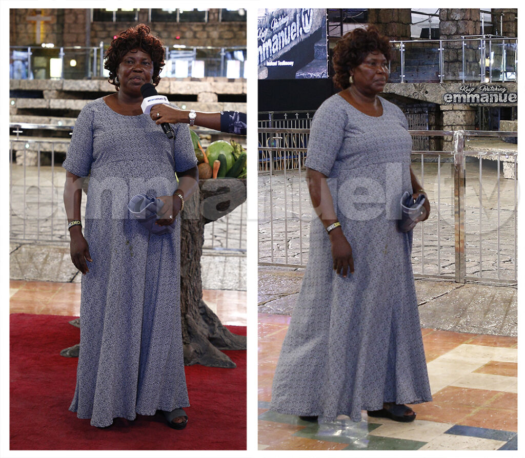 Por dois anos, Comfort de Gana sofreu de espondilose lombar e mal conseguia andar apesar de usar um espartilho lombar. Durante a ministração da Linha de Oração pela Pastora Evelyn Joshua, ela sentiu a corrente fria de Deus. Agora ela pode dobrar e virar o corpo em todas as direções, e pode andar com facilidade.