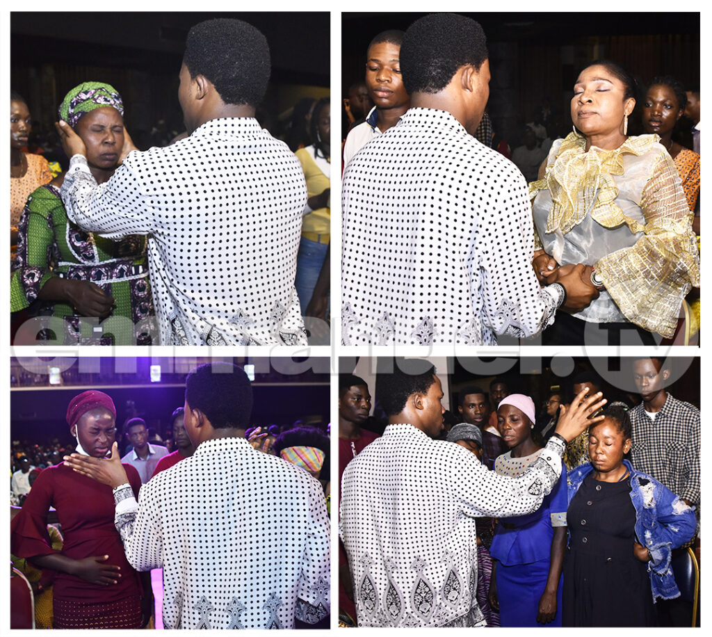 Até o último domingo, a teimosia era uma grande aflição na vida de Udo. Ela estava na igreja ao lado de seu marido e filhos, que testemunharam como o fogo do Espírito Santo consumiu o demônio nela. Testemunhando durante o culto de 25 de setembro de 2022, Udo não apenas falou sobre sua própria libertação, mas também testemunhou sobre a cura de seu filho da amigdalite congênita. Embora os médicos tivessem desistido do caso, Udo e seu marido levaram o menino à igreja com fé. Após um toque do evangelista, o menino agora pode respirar facilmente e dormir bem. Udo contou como sua família sofria de instabilidade no casamento e outros problemas. Ela também contou como costumava ser incomodada pelos ídolos da casa de seu pai, que costumavam fazê-la ver vários animais quando as luzes estavam apagadas. Ela ficou com medo e enfrentou desgostos quando adulta, mesmo quando não conseguiu se sair bem na escola. No casamento, o ídolo se manifestava como um marido espiritual que constantemente se interpunha entre ela e seu marido. “Agora, no entanto, sinto paz em minha vida e durmo bem”, disse Udo sobre sua libertação. Ela também falou sobre sua cura da menstruação dolorosa. O marido de Udo agradeceu a Deus pela cura de seu filho enquanto glorificava Seu nome pela libertação de Udo do espírito de medo. “Agora há carinho entre nós e as crianças estão felizes por estar com a mãe. Ele aconselhou as pessoas a esperarem pela manhã após a noite de choro. Udo disse aos congregados: “Coloque Deus em primeiro lugar em tudo que você faz e todas as outras coisas serão acrescentadas a você”.