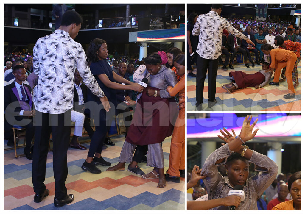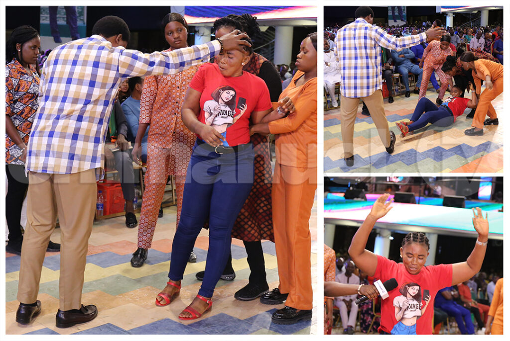 Depois de receber um toque da mulher de Deus sobre a sua cabeça, Comfort caiu de costas enquanto o espírito maligno nela se manifestava pelo choque divino.