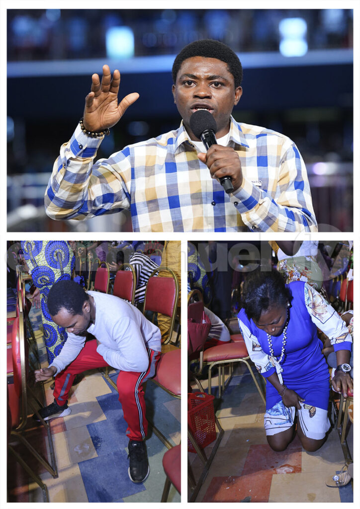 O evangelista Ope disse as pessoas que orassem: “Esse espírito que está bloqueando meu avanço, na área de finanças – eu ordeno a você agora mesmo pelo fogo do Espírito Santo: Fora!”