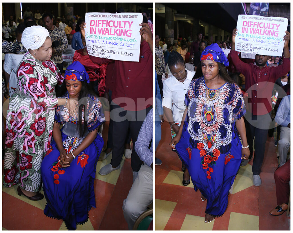 Margaret, do estado de Akwa Ibo, foi curada de espondilose lombar, que lhe causava dor nos últimos sete anos. “Minhas irmãs me trouxeram aqui hoje”, disse ela. “Mas agora estou feliz e sem palavras”, acrescentou. Agora não precisando mais de seu espartilho lombar, ela aconselhou as pessoas a se apegarem a Deus.