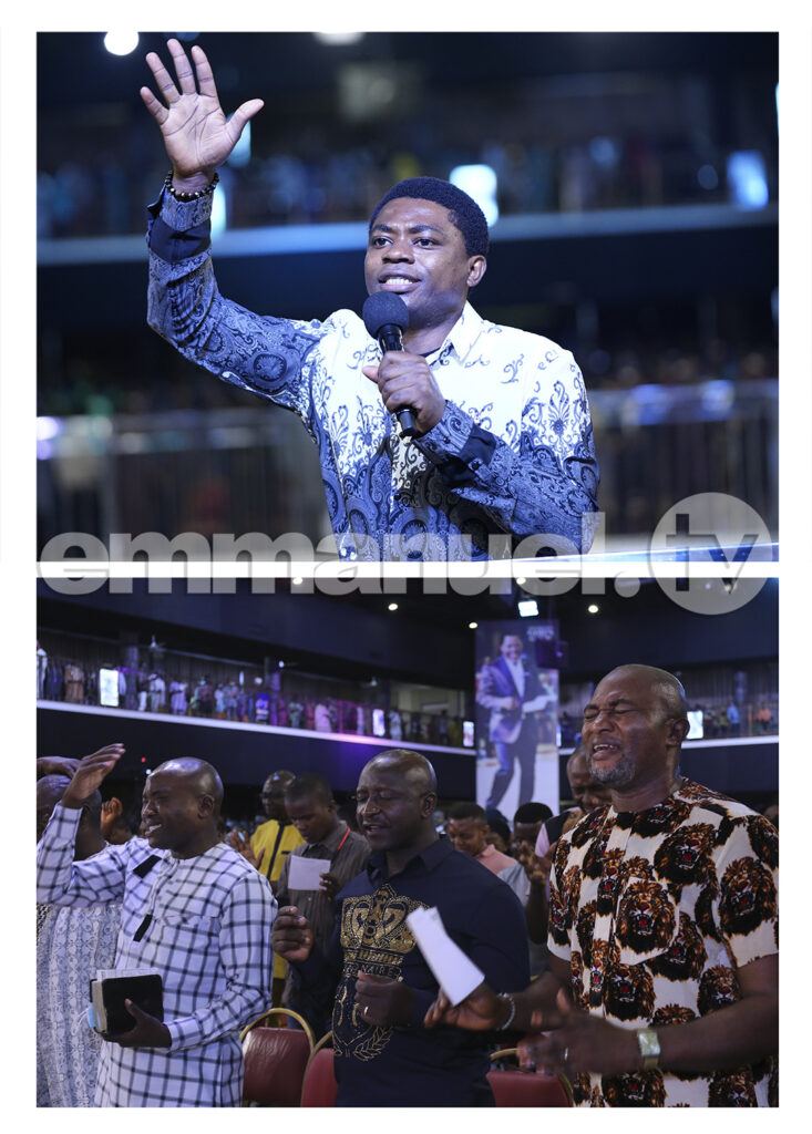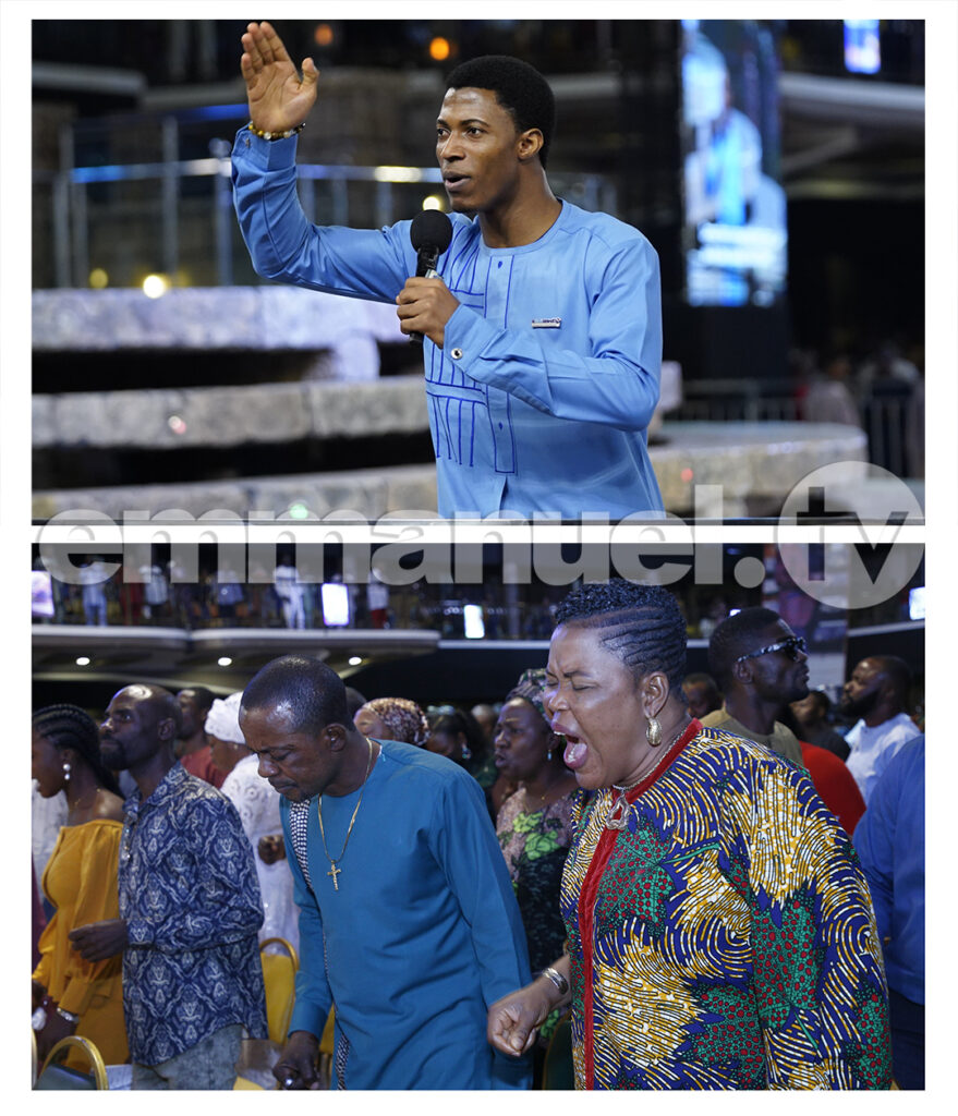 Iniciando a sessão de oração em massa, o evangelista Ope declarou: “O Filho de Deus está prestes a trabalhar em nosso meio”. Antes de ler Jeremias 1:9, ele pediu aos presentes e espectadores de todo o mundo que preparassem seus corações para o contato com o Espírito de Deus. “Há poder em sua boca; use-o agora para derrubar todo espírito demoníaco em sua vida, família, negócios, saúde”, disse o evangelista Ope. Ele então disse à igreja para orar: “Tu, Filho de Davi, toda atividade demoníaca em minha vida, família – pelo fogo do Espírito Santo – eu te derrubo!”
