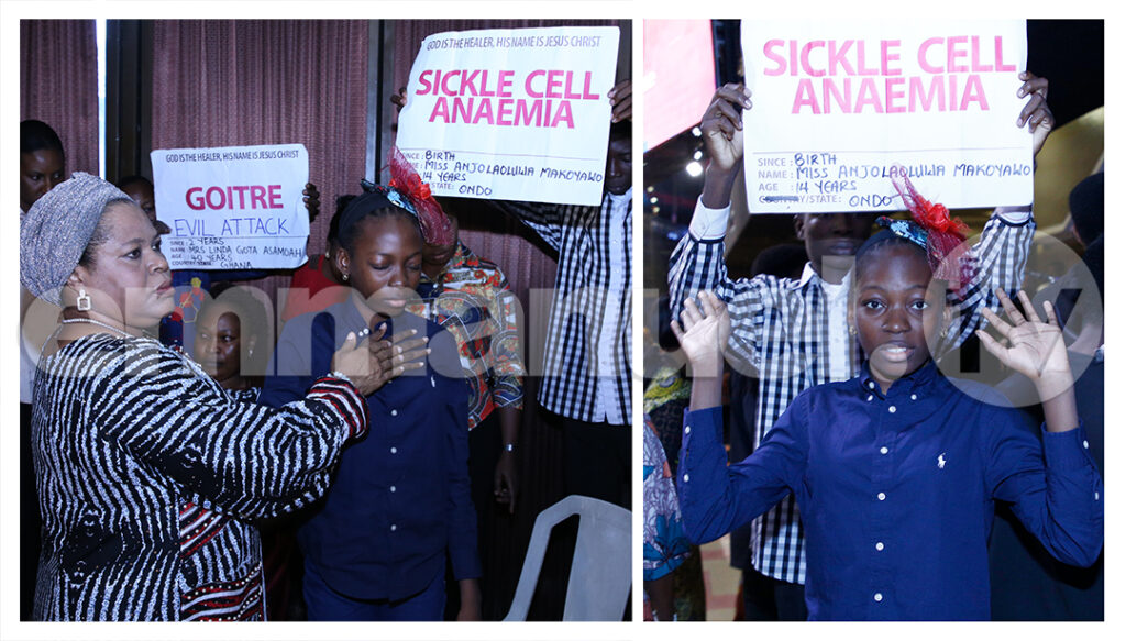 À medida que a mulher de Deus orava caso a caso, a cura e a libertação tornaram-se garantidas para aqueles que tinham dificuldade para andar devido a espondilose, asma, fratura, tumor na boca, derrame parcial, doença de pele, tuberculose, barriga/corpo inchado, diabetes, bócio e dificuldade em defecar. O poder no nome de Jesus Cristo também pôs fim a aflições como epilepsia, transtorno mental, úlcera na perna, anemia falciforme, depressão crônica e sangramento devido a miomas.