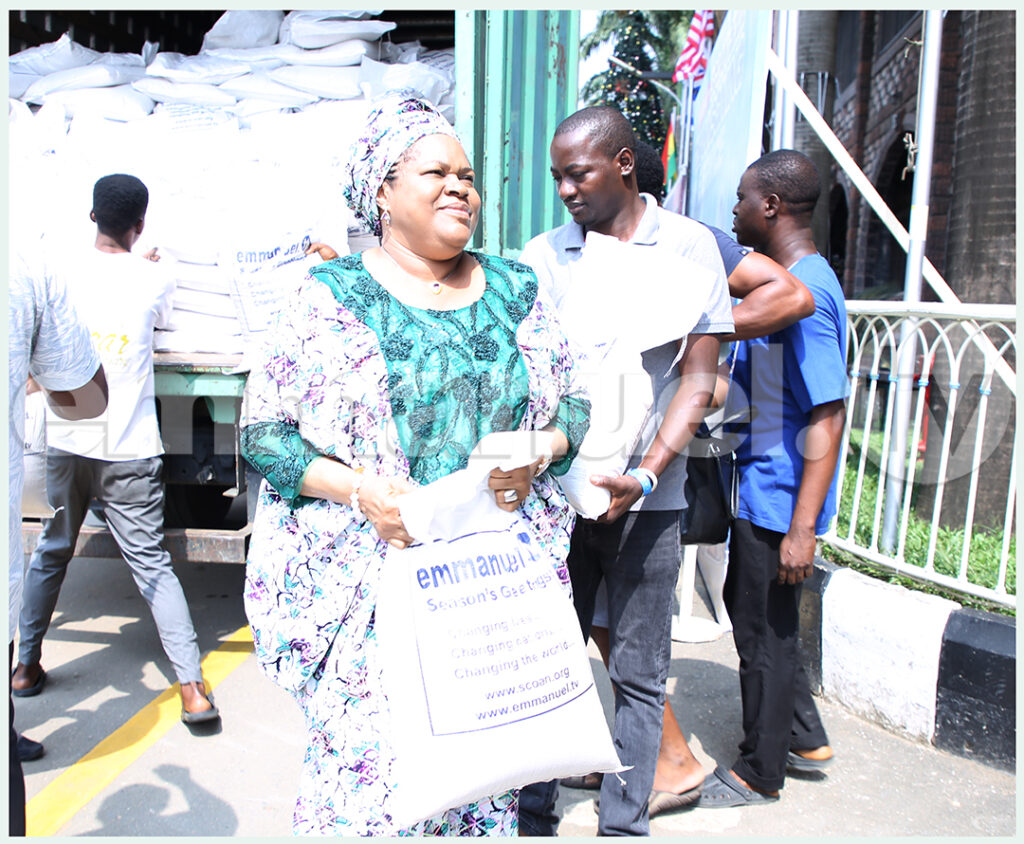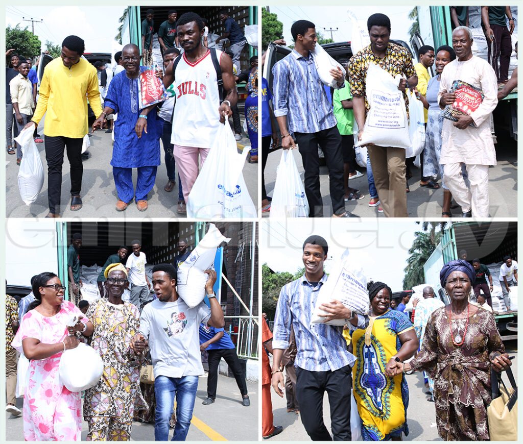 Além da soma de cinco milhões de nairas, a pastora Evelyn Joshua distribuiu centenas de sacos de arroz e cestas de presentes para o povo de Deus. Como diz o bom e velho ditado, a caridade começa em casa.