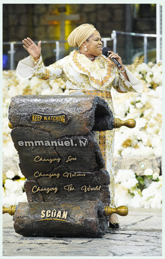 Por fim, a pastora Evelyn Joshua orou pelos parceiros da Emmanuel TV e todos os outros órgãos – governamentais e não governamentais – que têm apoiado os ministérios SCOAN e TB Joshua.