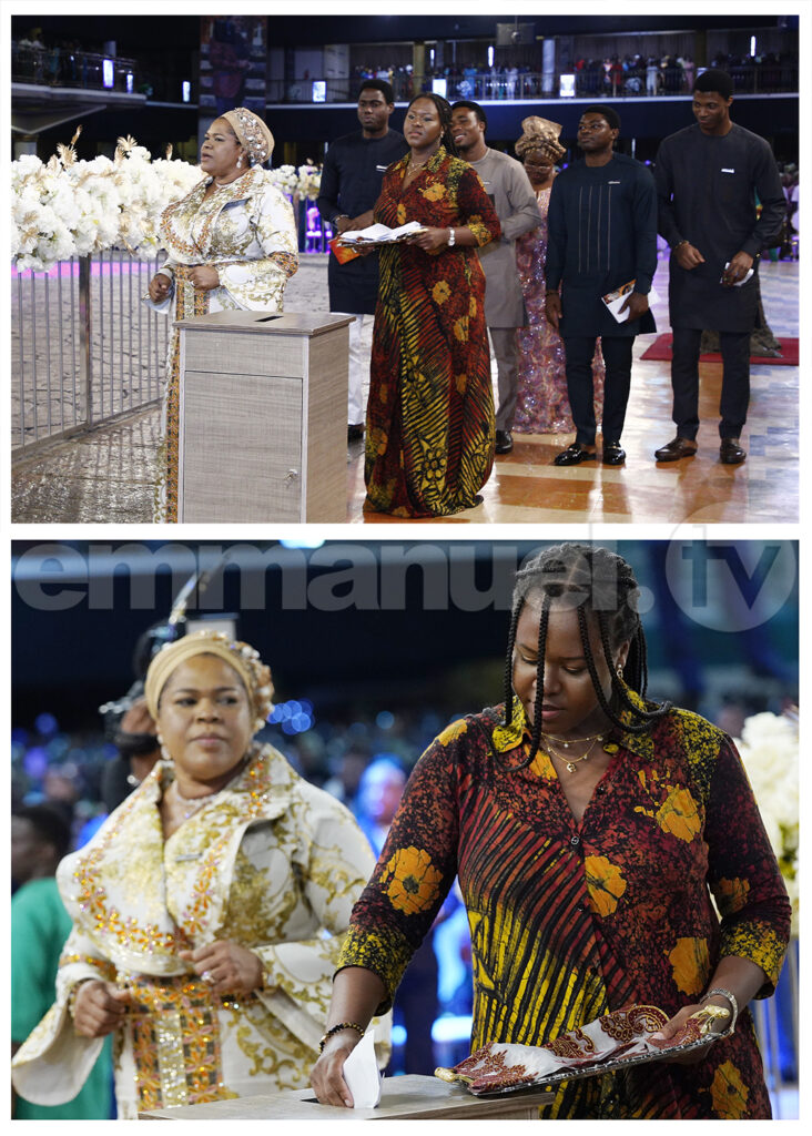 Houve também um tempo para dar oferta ao Senhor – em apreciação simbólica de Suas obras maravilhosas. Foi a pastora Evelyn Joshua e sua família quem foi primeiro, acompanhada pelos evangelistas Ope, Joseph, James e Chisom.
