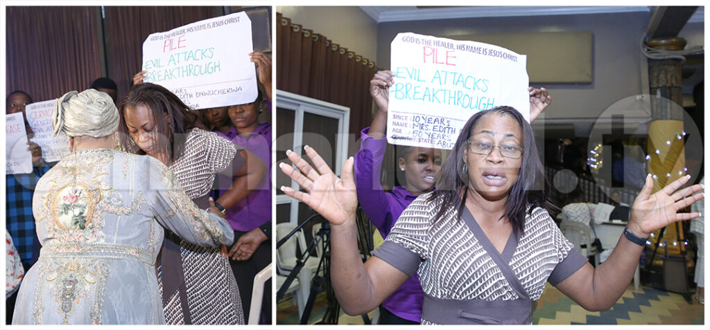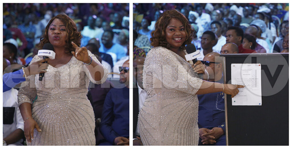 No início da sessão de oração em Massa, a mulher de Deus orou: “Qualquer poder que queira impedir que você assista a este culto hoje – seja desonrado, no poderoso nome de Jesus! Todo espírito contrário em nosso meio, todo espírito familiar, todo espírito que não é de Deus – nós ordenamos que você saia agora, no poderoso nome de Jesus!” Ela continuou: “Seja o que for que o inimigo possa ter plantado em sua vida – nós ordenamos agora, no poderoso nome de Jesus!” Ela então profetizou para o povo: “Receba sua cura, libertação, avanço – crescimento em sua vida, filhos, saúde!”