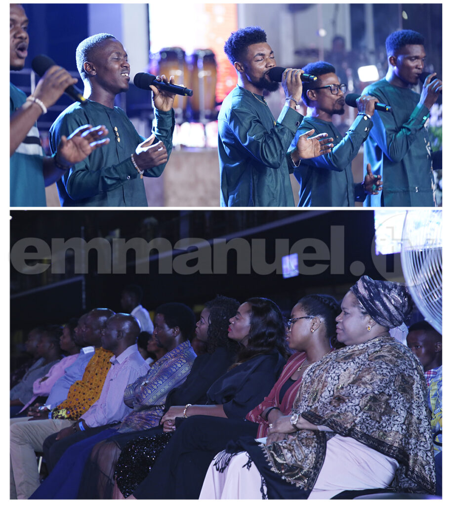 Após a oração de abertura do evangelista Chisom, os apresentadores do culto, irmão Jacob e irmã Jemila, se revezaram para apresentar os diferentes cantores e artistas.