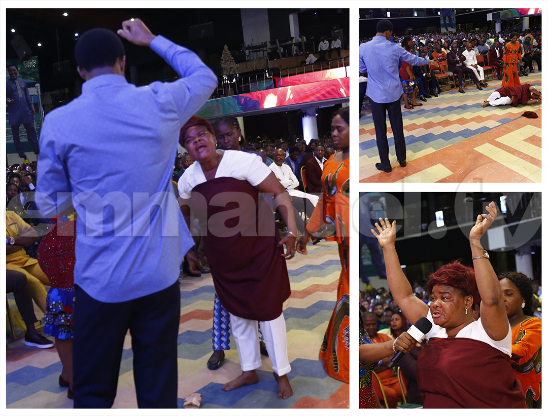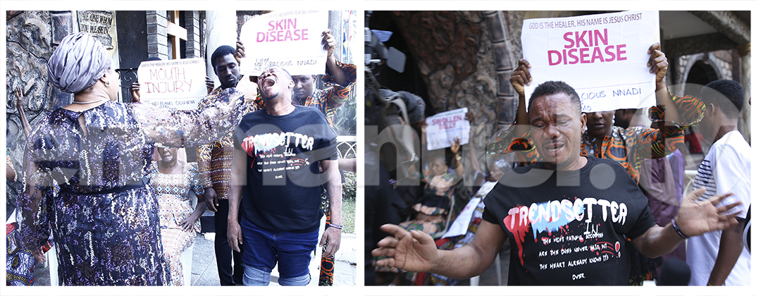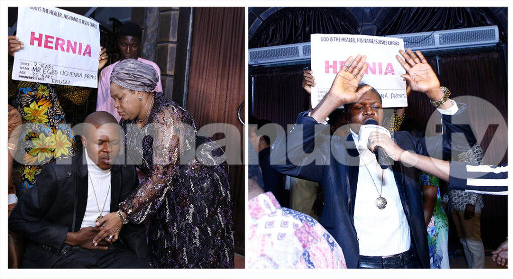 O evangelista Chisom disse aos presentes para orarem: “Doença, enfermidade, aflição – em qualquer lugar que você esteja em meu corpo, meu corpo não é seu templo. Eu te ordeno: Fora! O que quer que eu tenha comido através de sonhos ou da mesa do adversário – demônio me causando doença: Fora!”
