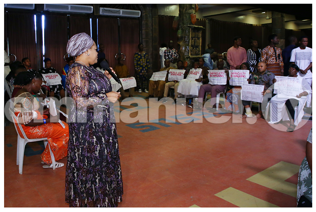 Ela então passou a impor as mãos ungidas sobre os enfermos e cativos. Havia pessoas com problemas e dificuldades para andar ou urinar, luxação do tornozelo, hemorróidas crônicas, hérnia, anemia falciforme, doença de pele, lesão na boca, epilepsia, dependência de drogas e barriga inchada. Também havia mulheres buscando oração para um parto seguro. Pelo poder do nome que tudo conquista de Jesus Cristo, todas as pessoas receberam alívio divino e tiveram alegria permanente!