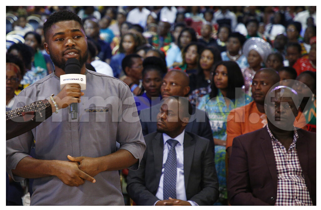 Iniciando a sessão de oração em massa, o Evangelista James disse à igreja: “O Senhor é bom em todo o tempo – deem graças a Ele! Sua confissão lhe dá posse. O que quer que você diga agora, seja sincero com o coração!